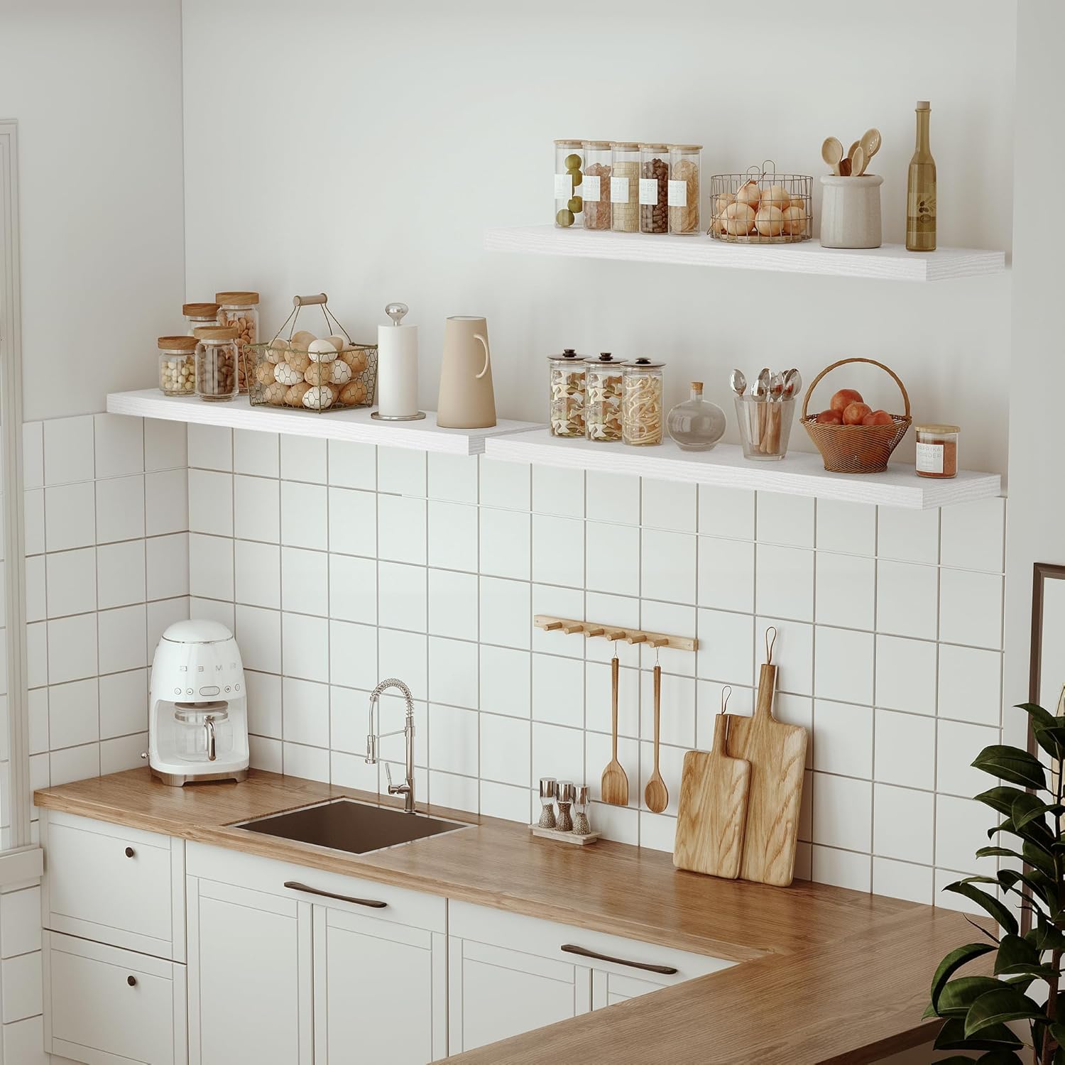 • Versatile & Functional - Our Decorative shelf for wall Adds character to any modern, traditional, rustic, or farmhouse decor home & kitchen styles.These shelves for wall decor above a small desk in your guest room, desks, fireplaces, over toilet storage shelf,living room wall decor, corner bookshelf, bathroom decor, office wall decor,or vanities and so on. If you are seeking easy-to-install, stylish floating shelves to add a contemporary touch to your home, these shelves are an excellent choice.