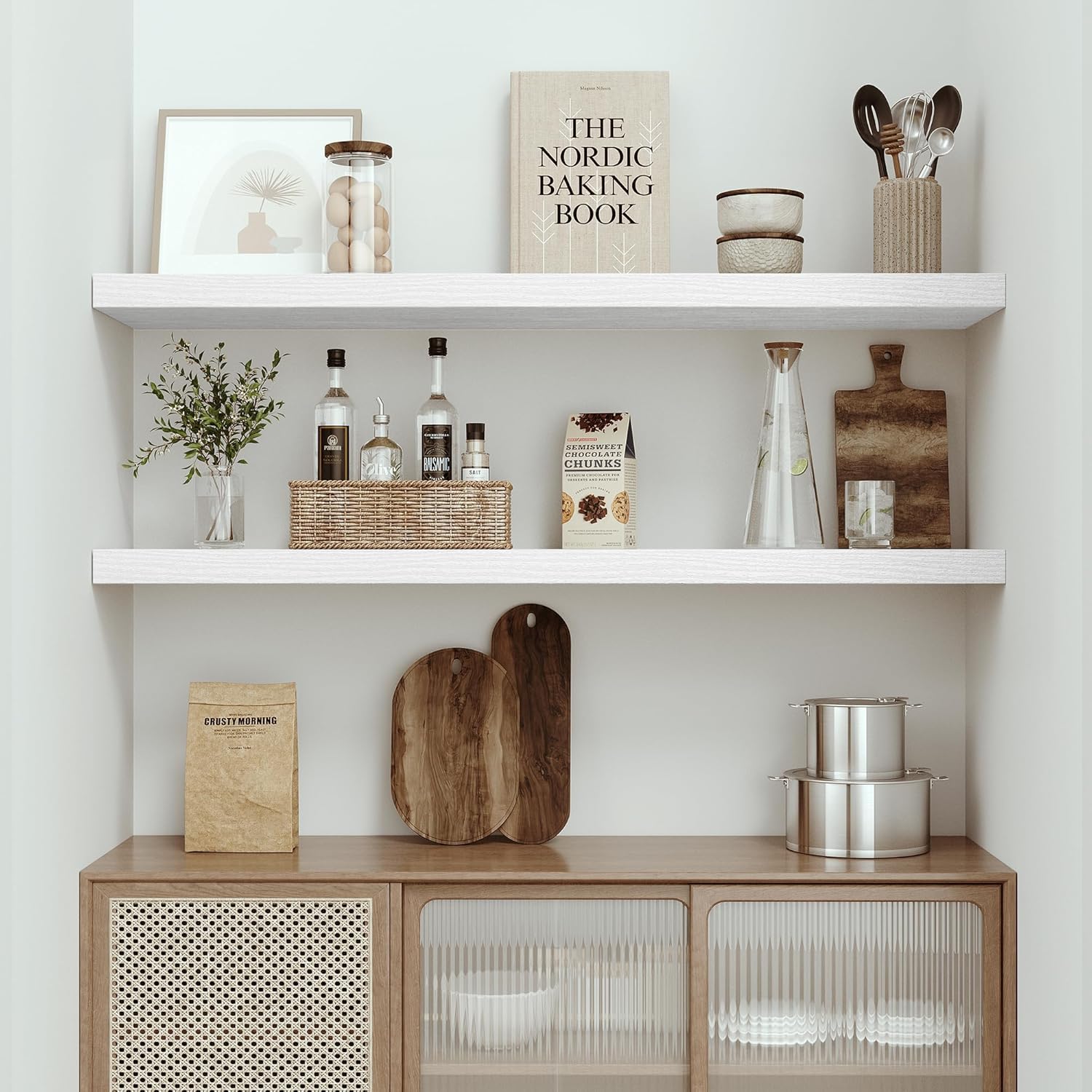 Single Floating Shelves 48 Inches, 48 x 10 inch Deep x 1.8 in Thick, Long Wall Shelves Heavy Duty 80 lbs for Bedroom, Living Room, Kitchen, Office, Modern Shelf Book Home Decor, White