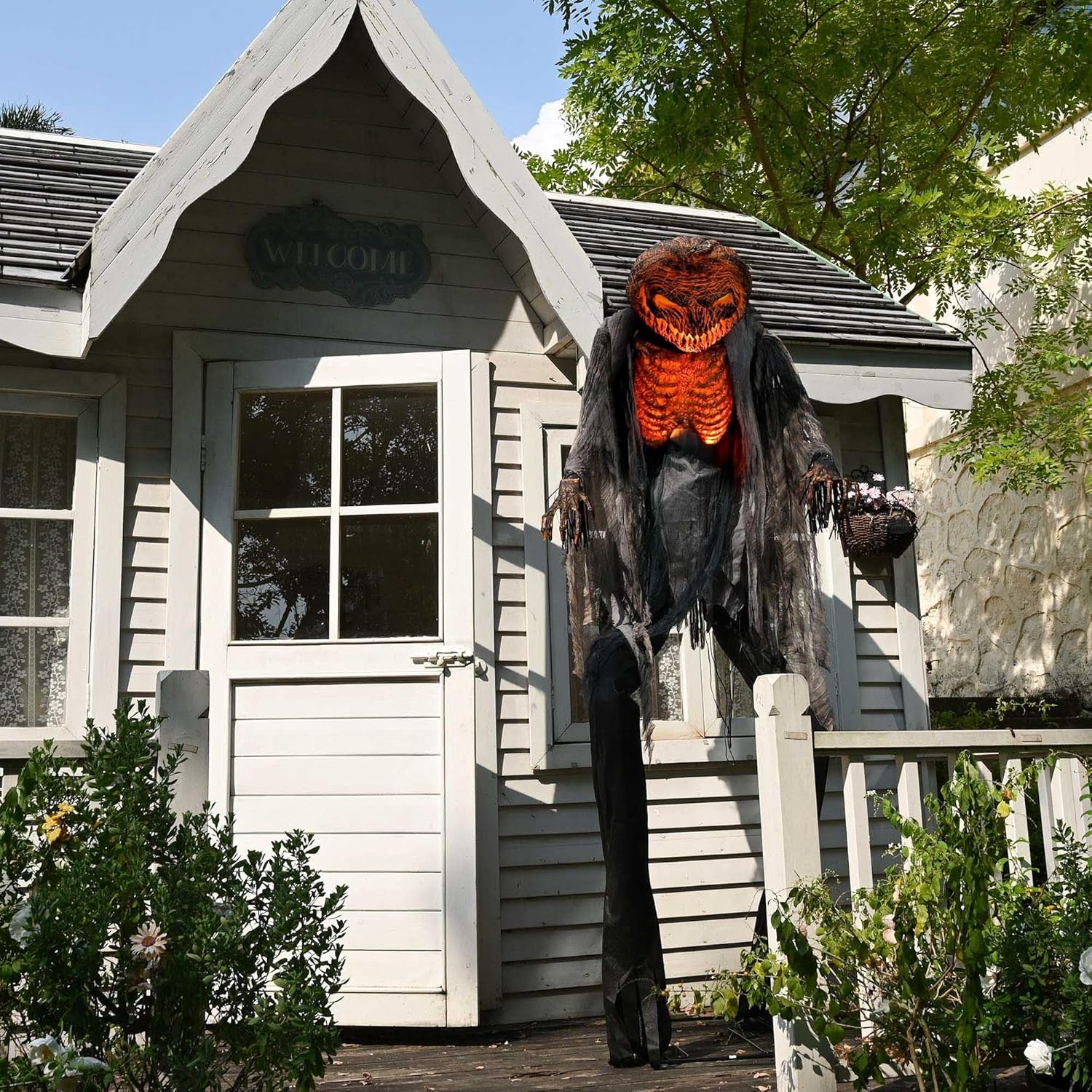 • Creepy Giant Pumpkin Ghost - Features a life-size scorched Jack-o-Lantern scarecrow with ragged clothes like an undead ghoul from hell, while its glowing pumpkin head & chest add a spine-tingling ghastly effect to the look in the darkness