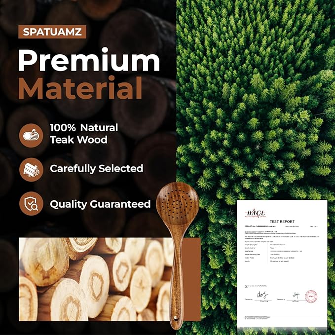 • 【100% Natural Teak Wood – Safe & Healthy】: Our wood utensils set is made from 100% natural teak wood, ensuring it’s both safe and healthy for everyday use. These wooden cooking spoons are free from any harmful substances, making them an ideal choice for those seeking high-quality, harmless kitchen utensils. Please note: The current packaging may say “Natural Wood,” which refers to the same authentic teak material. Updated packaging with the correct teak wood labeling is being rolled out