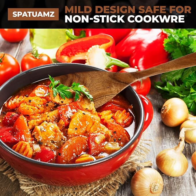 • 【Safe for Nonstick Cookware – Durable & Heat-Resistant】: Our teak wood utensils are perfect for nonstick cookware, preventing scratches or damage to your pans. These utensils are strong, long-lasting, scent-free, and heat-resistant, making them ideal for high-temperature cooking