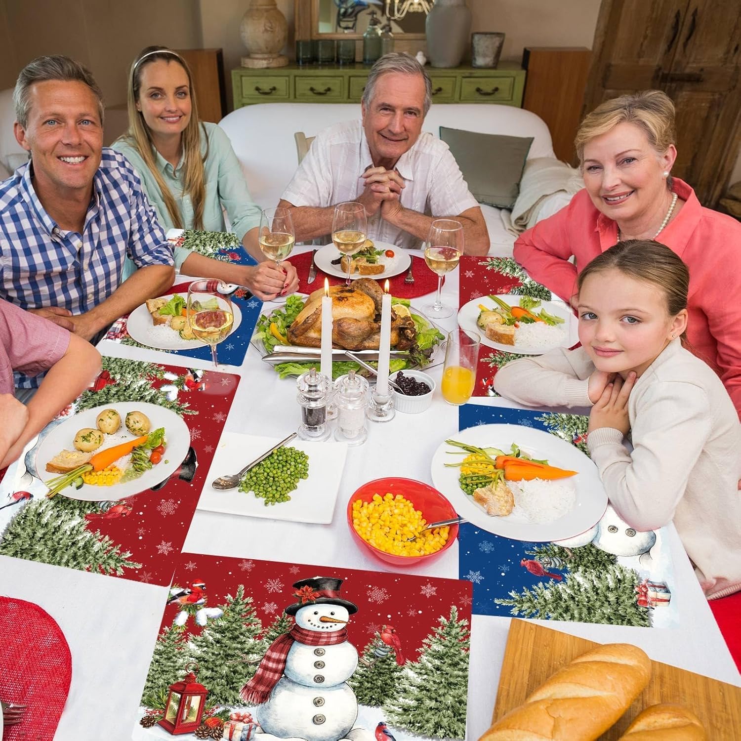Winter Christmas Placemats Set of 6 Red Blue Snowman Plastic Table Mats Christmas Tree Birds Place Mats Washable Vinyl Seasonal Winter Table Decoration for Indoor Outdoor Party Kitchen Dining