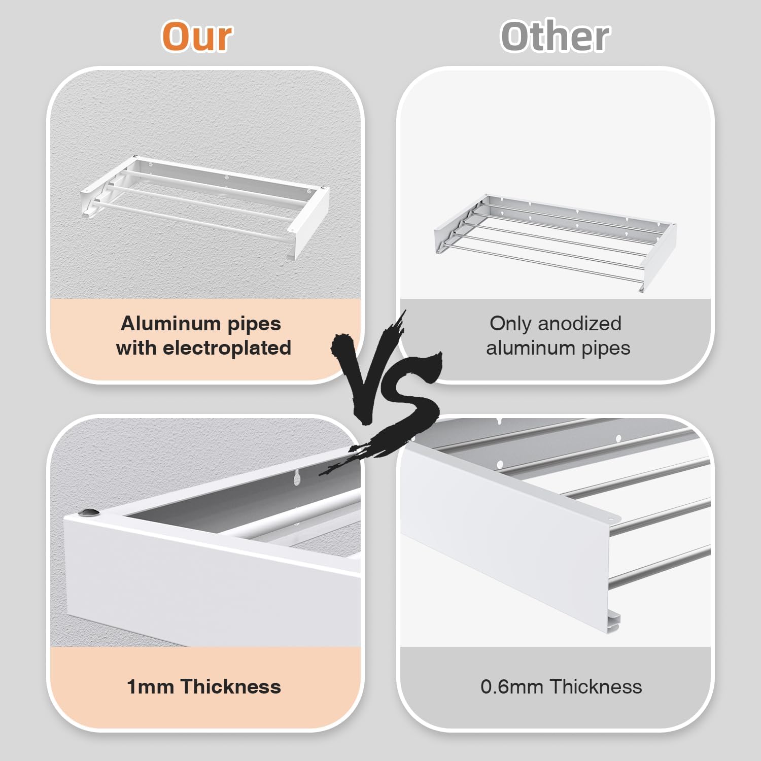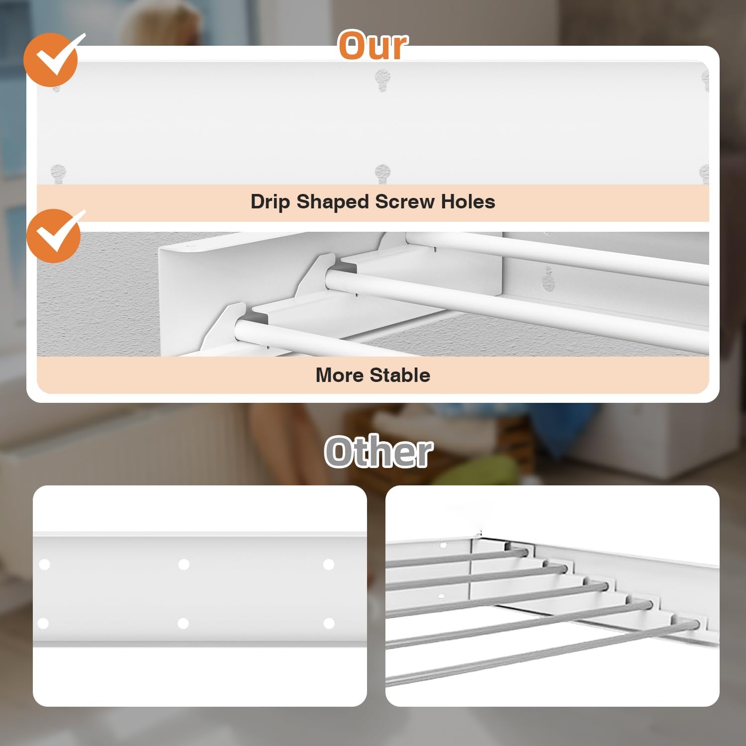 • Heavy Duty & Sturdy: 5 drying rods of the collapsible clothes drying rack are made from premium stainless steel, noticeably thicker and more robust than the standard silver pipes seen in the market, without risk of bending or deformation. 60lbs Capacity. This clothes dryer rack takes up little room, but when open you can fit so much! Compact yet functional.