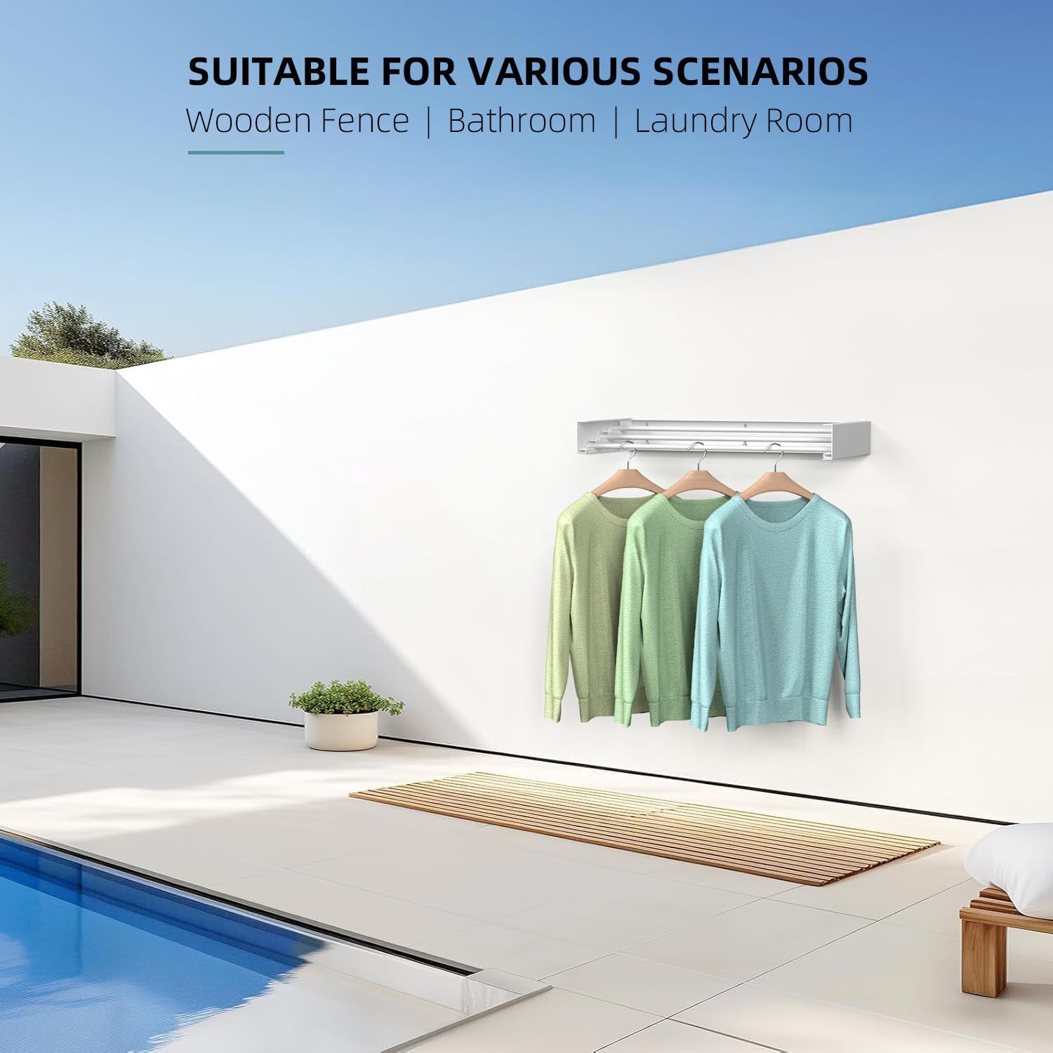 Laundry Drying Rack Collapsible, Wall Mounted Clothes Drying Rack Wall, Space Saving Drying Rack for Laundry, 19.8" Wide, 3 Aluminum Rods, 50 lb Capacity