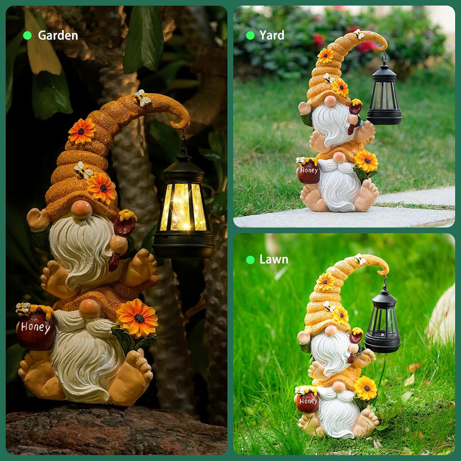• Versatile and Easy to Use: The gnome and lantern can be used together or separately, offering flexible decoration options. Simply turn on the side button and place in direct sunlight for optimal performance. Perfect for enhancing any garden style.
