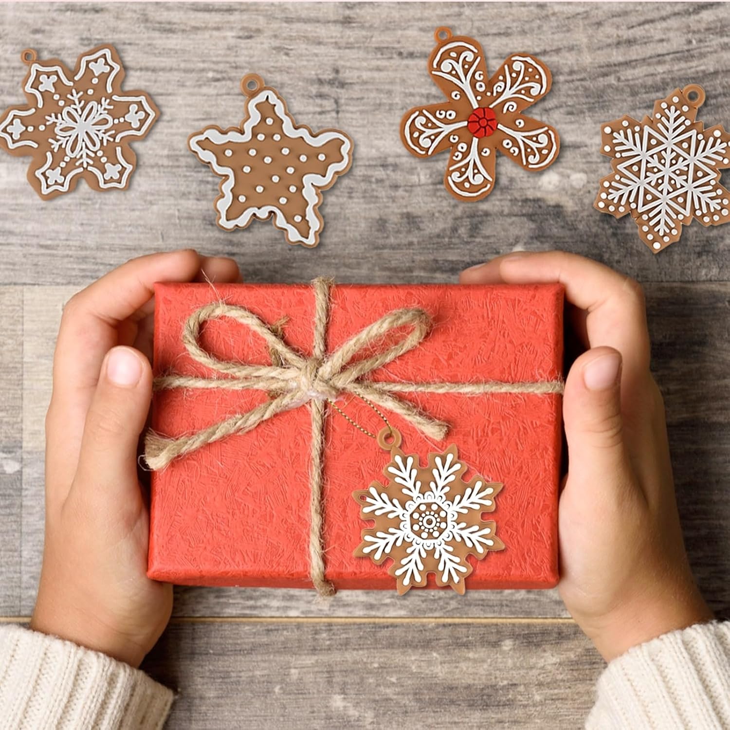 • Festive Gingerbread Snowflake Charm: This Christmas gingerbread snowflake ornaments set brings the perfect combination of holiday charm and rustic elegance. The gingerbread christmas ornaments are thoughtfully designed with intricate snowflake patterns and the warm tones of gingerbread, evoking a nostalgic, vintage feel. Ideal for those looking to create a cozy and inviting holiday atmosphere