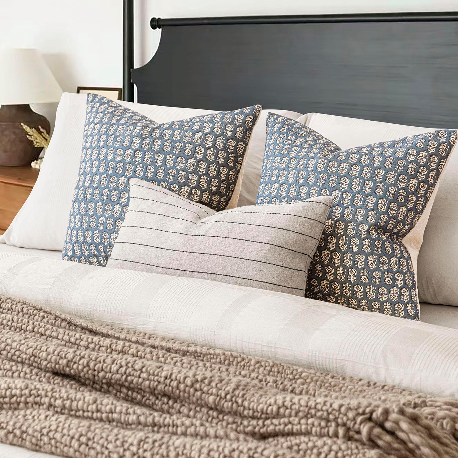 Foindtower Set of 2 Decorative Vintage Floral Print Throw Pillow Covers Neutral Modern Farmhouse Cushion Covers Boho Home Decor for Sofa Couch Chair Bedroom Living Room Outdoor,20×20 Inch,Dusty Blue