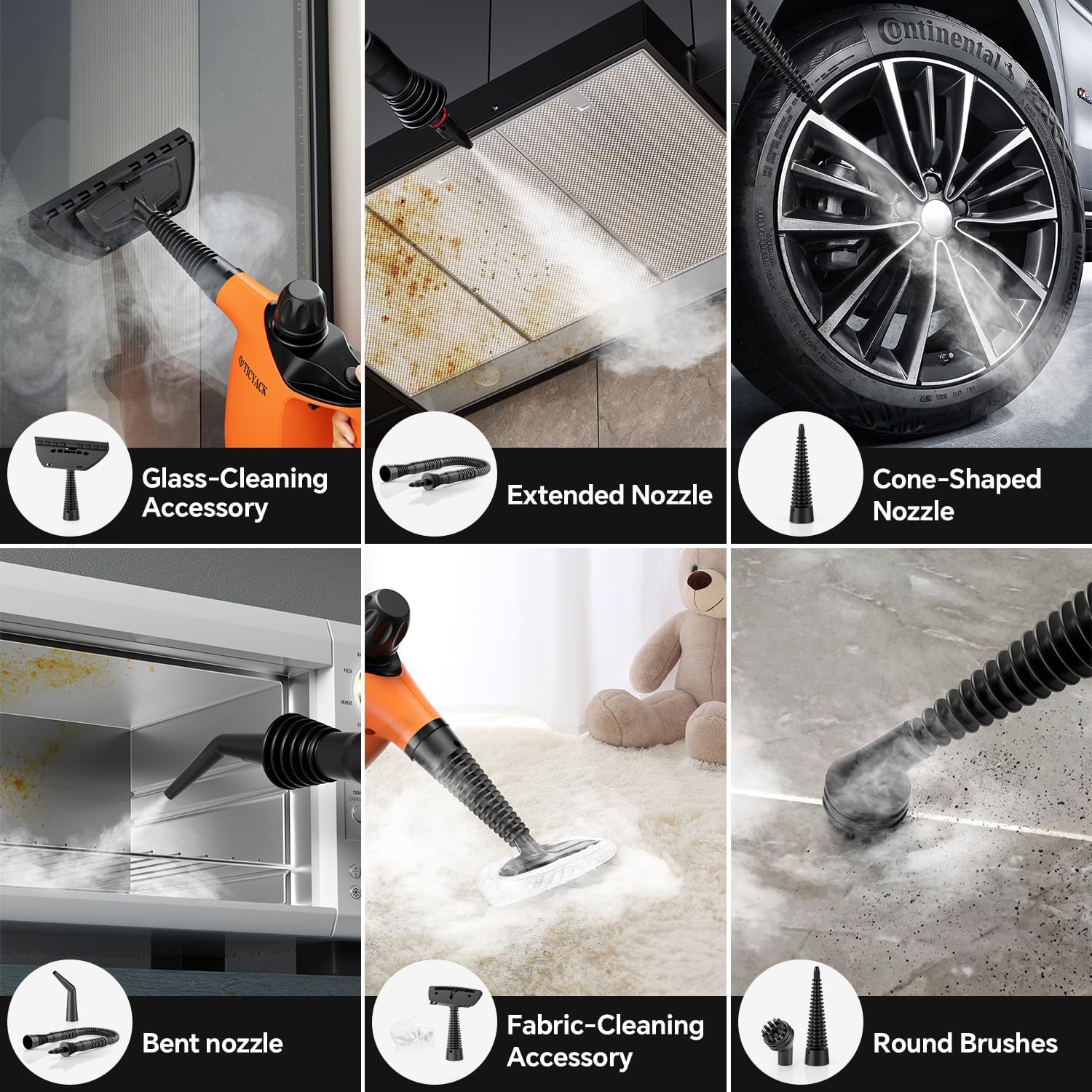 • 【16-Piece Steam Cleaner Set】Our household steam cleaners come with a comprehensive 16-piece accessory set, providing you with the flexibility to choose the right tools for cleaning hard-to-reach areas. Handheld Steam Cleaner can be used in different scenarios, for example kitchen, bedroom, living room, car leather goods, bathroom, clothing and so on. Whether it is stubborn grease or dust in the crevices, it can be swept away.