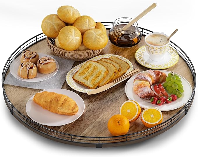 • Exquisite Texture- A turntable to meet your many home needs. Place it in your cabinet to easily store and access food, condiments, cans, medicines and more. As a coffee table tray, perfect for displaying napkin holders, vases, candles. Use it as a bathroom vanity tray to store lotions, perfumes, cosmetics, keep your life organized!