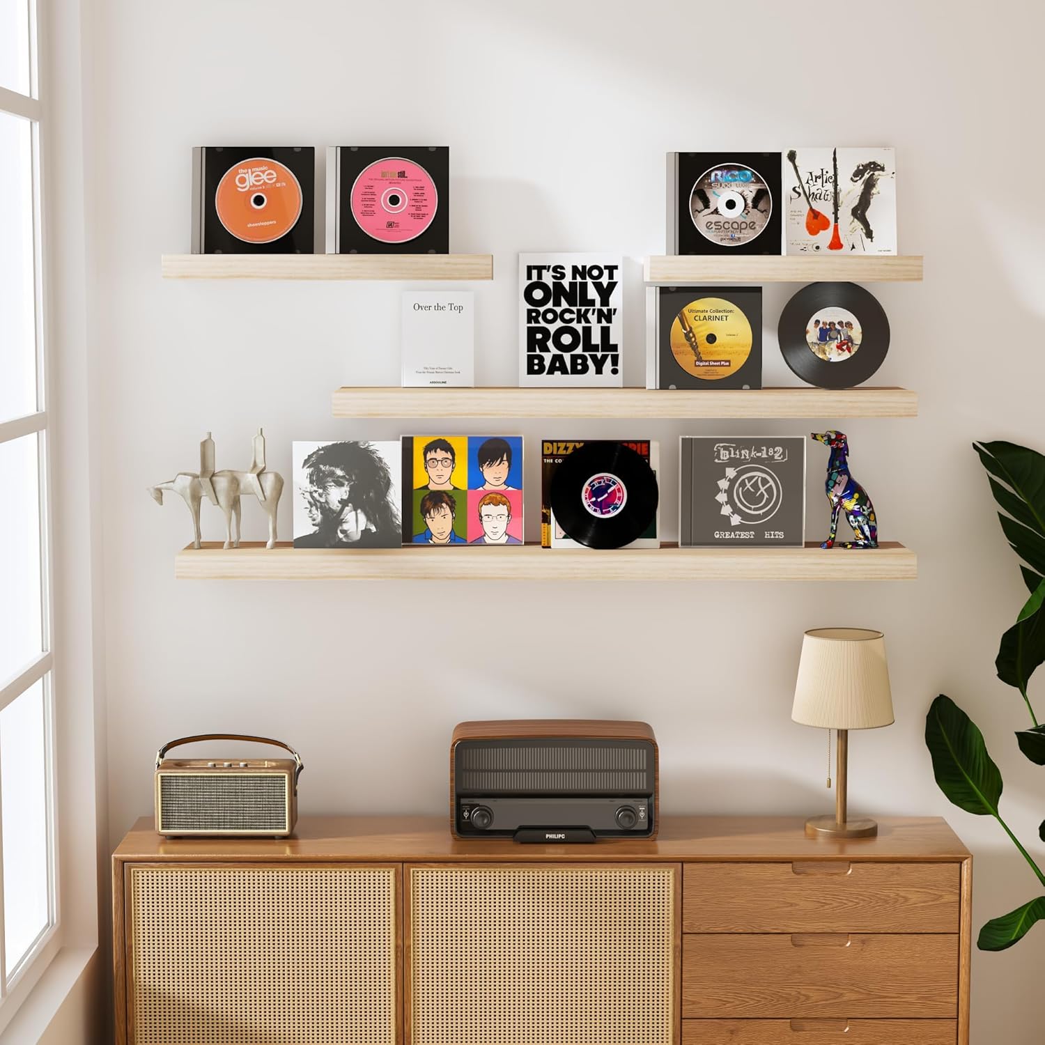 Light Wood Floating Shelves 48 Inch, 8 in Deep Single Book Shelf Floating for Wall Mounted, Heavy Duty Shelf Hold 100 lbs, Unfinished Wall Shelves for Bathroom, Living Room, Kitchen, Bedroom, Office