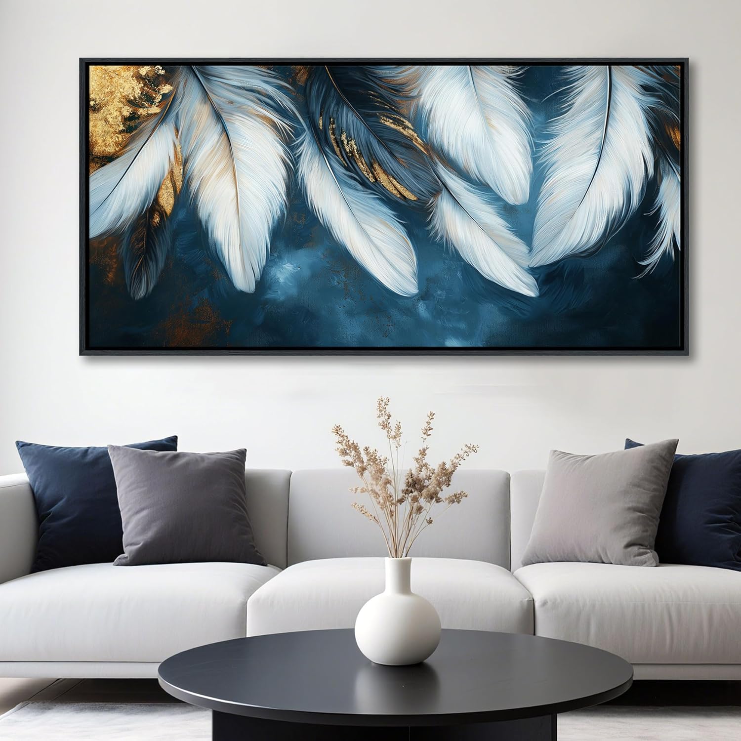 • Wall Art for Living Room:This artwork is crafted from high-quality, fade-resistant canvas and securely mounted on a solid frame. The piece features hand-applied gold foil accents, adding a unique, luxurious touch to the feather design.