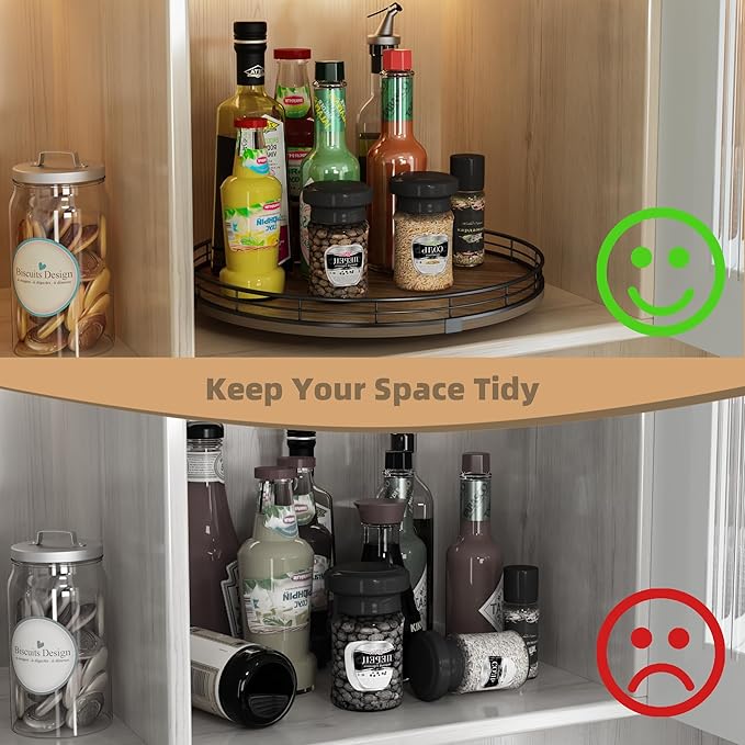 • 360°Smooth Rotation - The lazy susan turntable rotates smoothly and silently, placed next to the stove for easy access to condiments, spices, olive oil and cooking supplies. Placed next to the sink to display soap lotion. Thoughtful kitchen countertop organizers to rid your life of clutter!