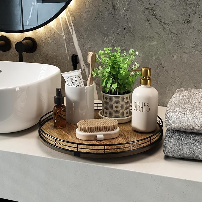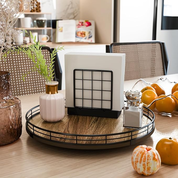 • Exquisite Texture- A turntable to meet your many home needs. Place it in your cabinet to easily store and access food, condiments, cans, medicines and more. As a coffee table tray, perfect for displaying napkin holders, vases, candles. Use it as a bathroom vanity tray to store lotions, perfumes, cosmetics, keep your life organized!