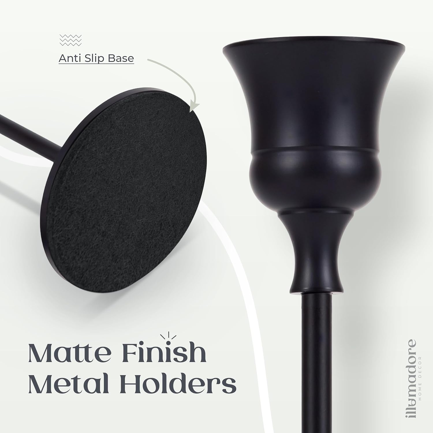 • PREMIUM QUALITY MATERIALS! These holders are crafted from sturdy metal with a sleek black matte finish. Designed to fit 7/8” and 3/4” candles, their high-quality construction ensures lasting durability and a long product life.
