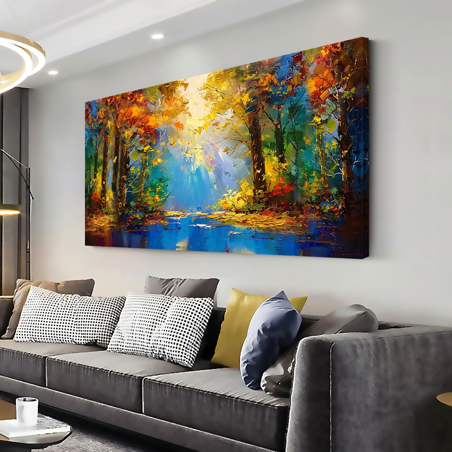 LASMOND Beautiful Colorful Forest Scenery Landscape Wall Art Decor Artwork for Bedroom Living Room (58x28 Inches)