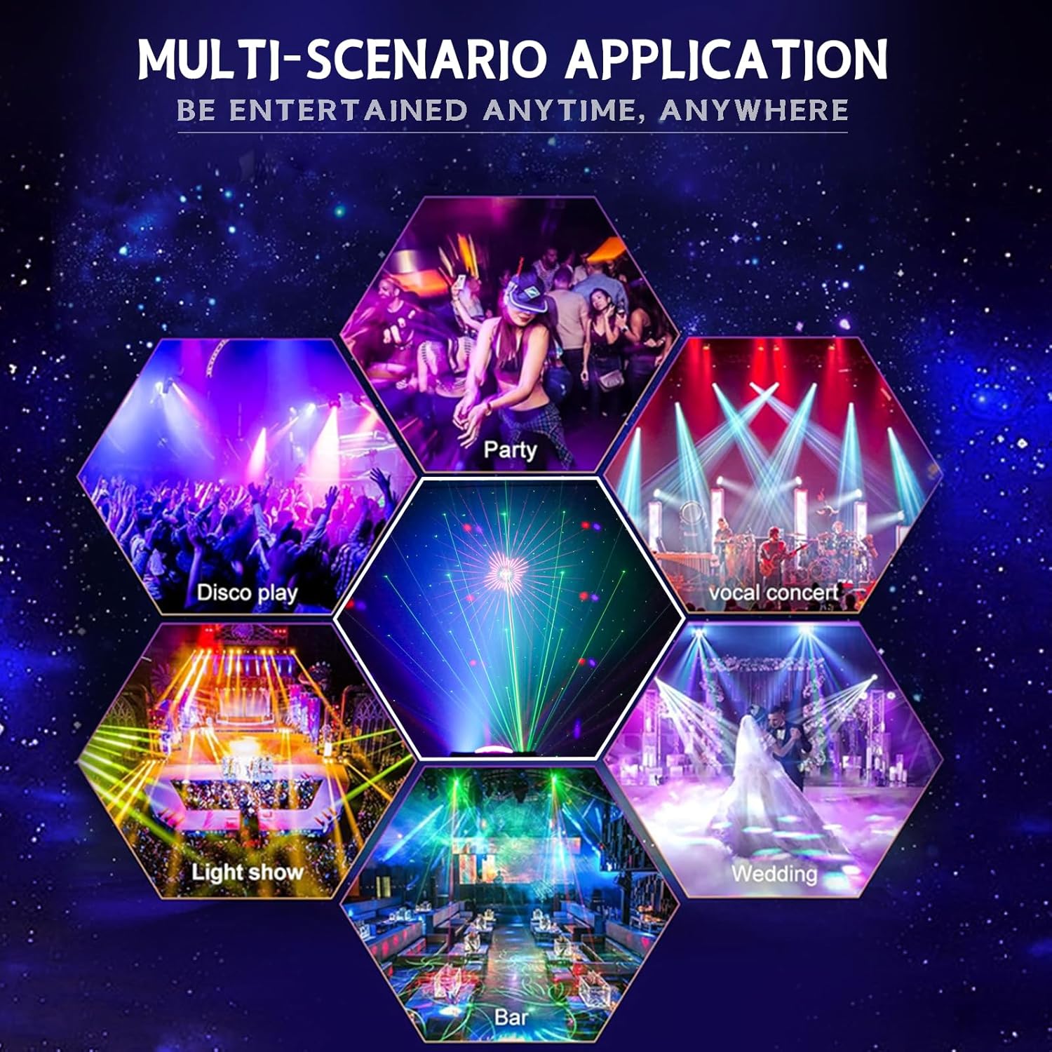 • 【Vibrant Patterns and Strobe Light】This s a wonderful party light. The light rotates and sends strobes of light and you can mix up the patterns. The patterns are in red and green but the strobe lights can be different colors. This party light is a great way to add some ambiance to any party or event. It's easy to set up and use, and it come with a variety of different light modes to choose from.