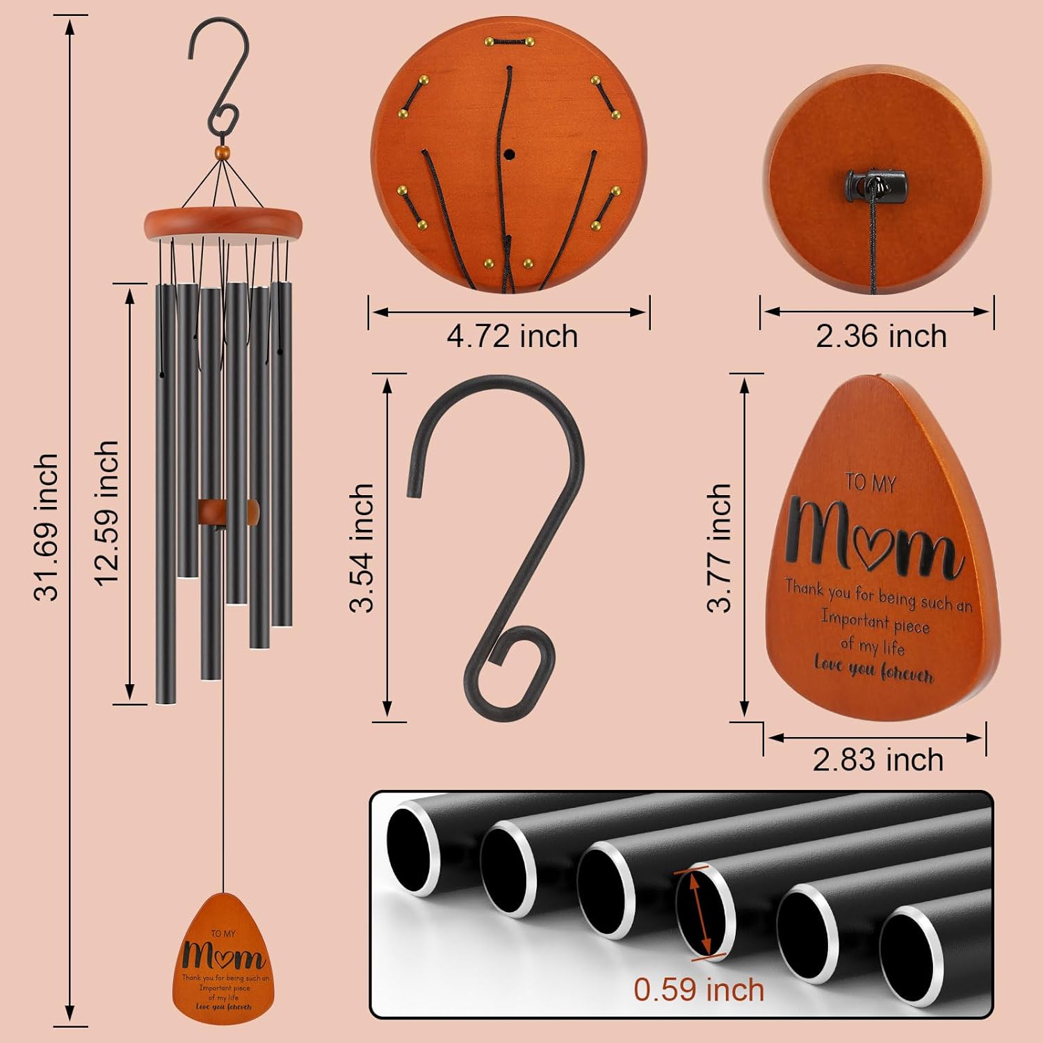 • Soothing Sounds for Relaxation: With its precise design and six thick-walled aluminum tubes, this wind chime gift produces soothing melodies, creating a serene atmosphere that promotes relaxation and tranquility. It's a perfect way to express your love and strengthen your bond with your mom.