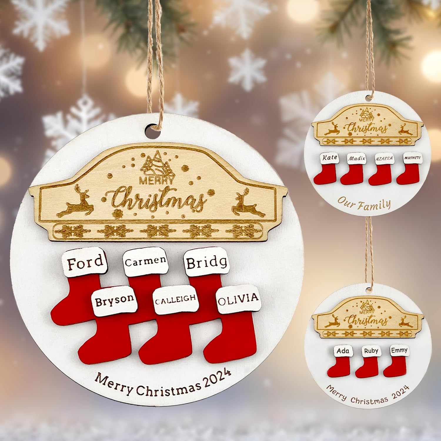 • 【Personalized Christmas Ornaments 2025】: Personalized Christmas family name ornaments full of Christmas spirit. A variety of Christmas elements are combined and matched on a wooden circle, making the entire product more Christmas-friendly