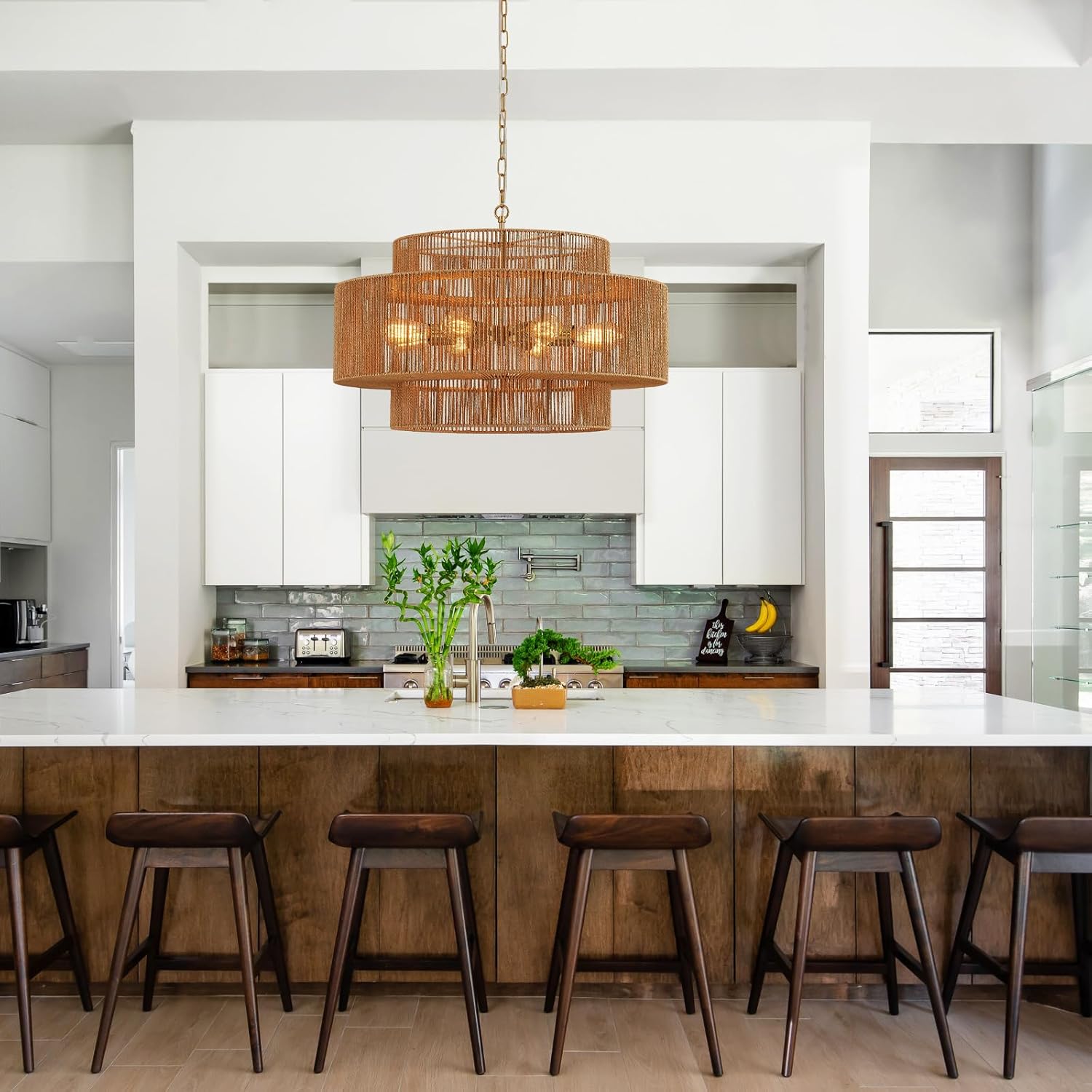 • 【Perfect for Any Room】This hand woven rattan chandelier is a versatile addition that creates a warm and inviting atmosphere, whether it's your dining room, living room, bedroom, or kitchen.