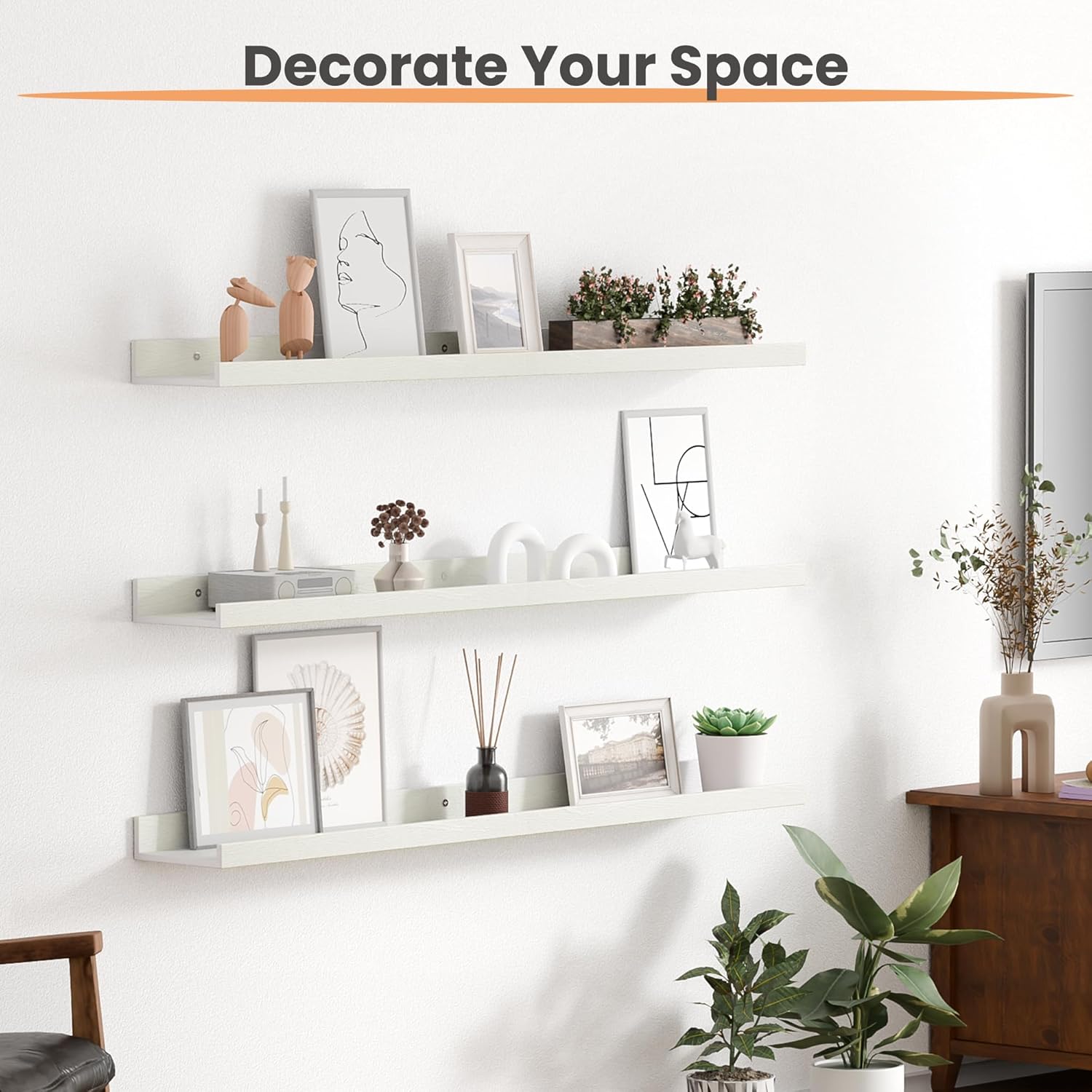 upsimples Floating Shelves for Wall, Wall Shelves for Decor Storage Set of 6, Wall Mounted Wood Shelf for Bedroom, Living Room, Bathroom, Kitchen, 35.5 inch Long Picture Ledge Shelf, White