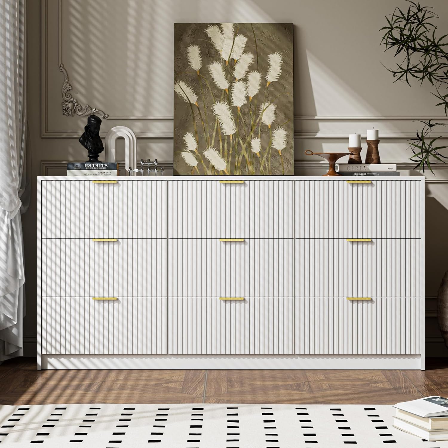 White Dresser for Bedroom, 9 Drawer Double Dresser, Modern Chest of Drawers for Bedroom, Living Room, Entryway and Closet, 63" L x 15.7" D x 31.5" H