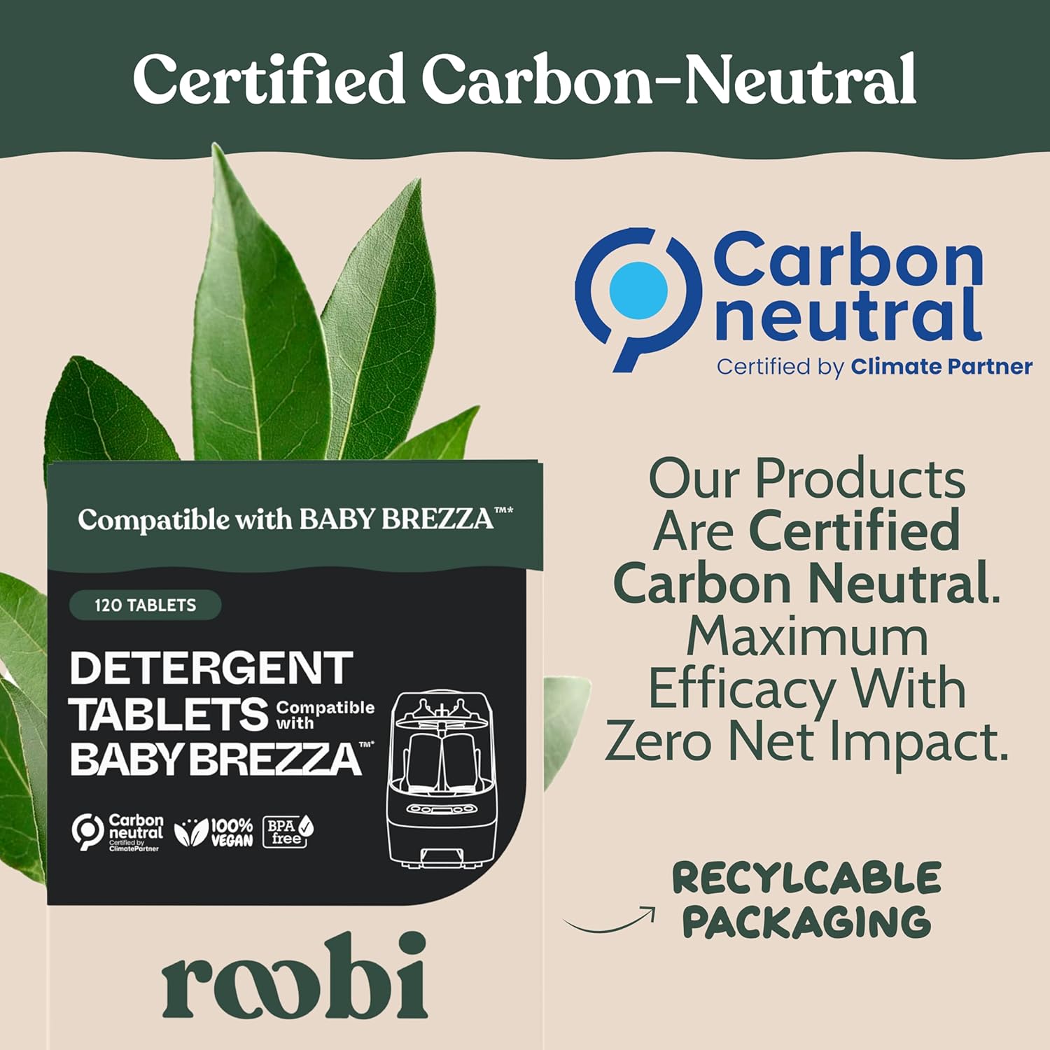 Roobi Detergent Tablets Compatible with Baby Brezza Bottle Washer Pro. Removes Milk Residue & Odor, Hypoallergenic Carbon Neutral Formula. 120 Count.