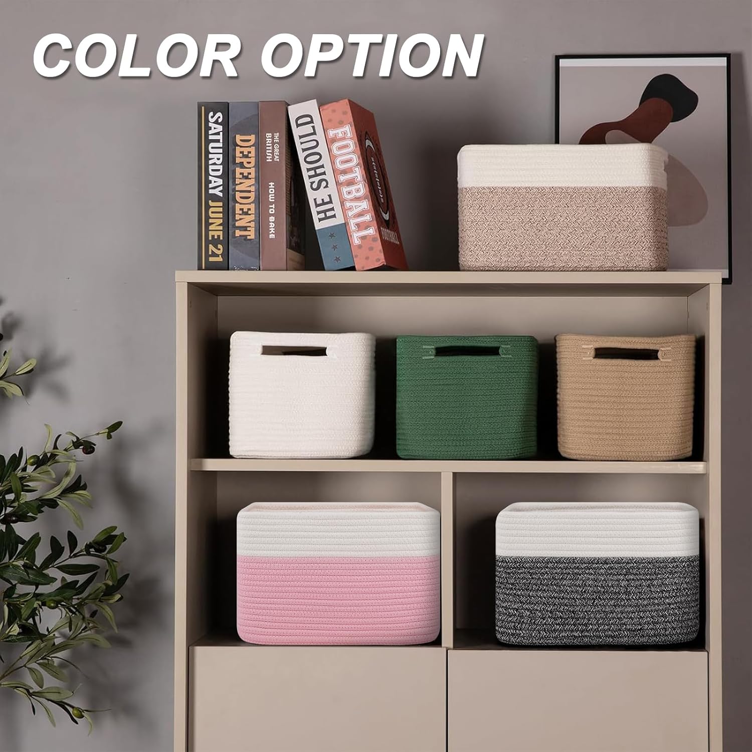 • Stylish and Elegant: SIXDOVE Cotton Rope Storage Basket. The woven design of these baskets adds a touch of rustic charm to any room decor, making them a perfect addition to your living room, bedroom, bathroom, or nursery. These cube rope storage baskets enhance any room or decor of your home