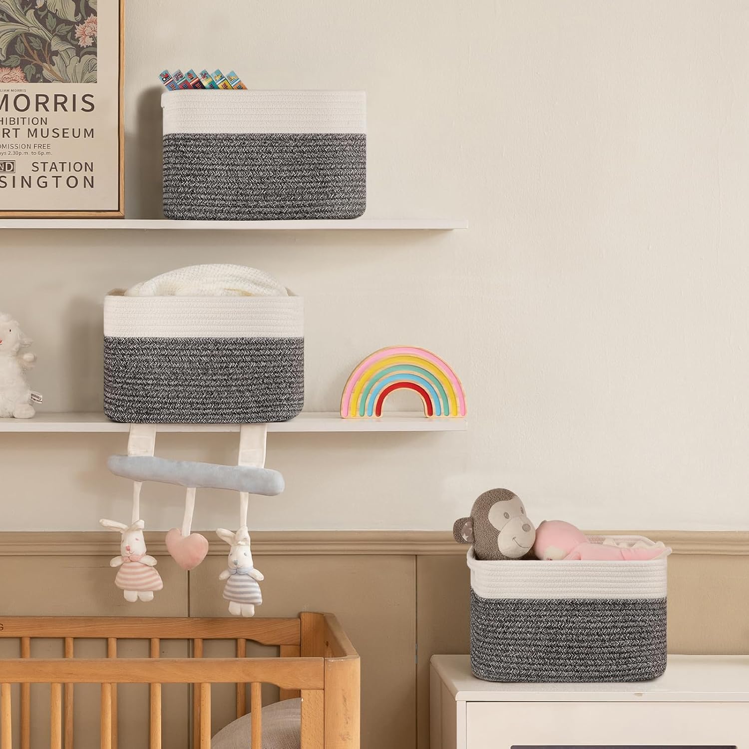 • Stylish and Elegant: SIXDOVE Cotton Rope Storage Basket. The woven design of these baskets adds a touch of rustic charm to any room decor, making them a perfect addition to your living room, bedroom, bathroom, or nursery. These cube rope storage baskets enhance any room or decor of your home