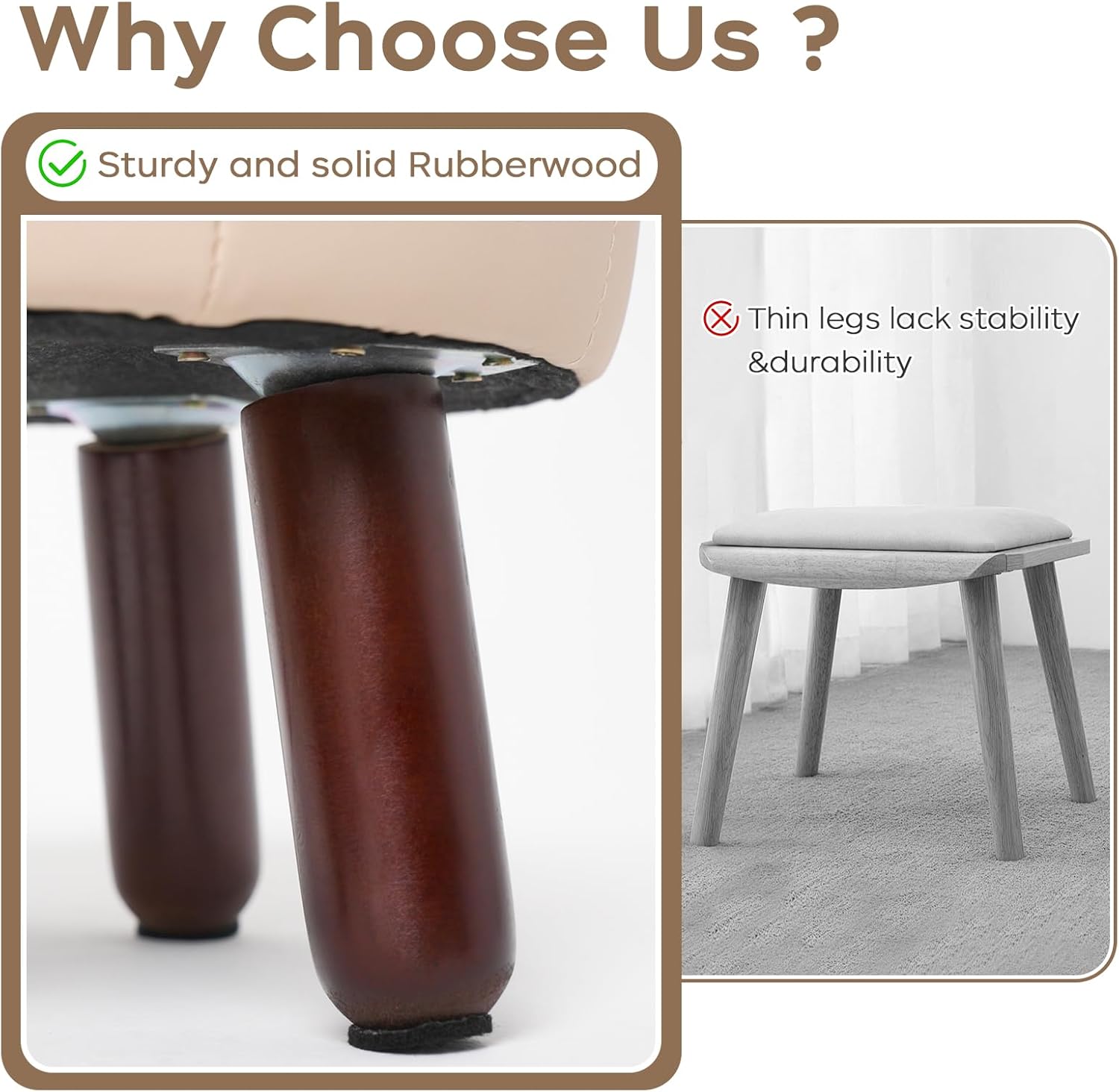 • 【Anti-Slip Design】- These leather foot stools small ottoman rubber legs come with dedicated felt pads to prevent scratches on floor and keep it from sliding.Wood leg with non-slip felt pad is quiet when moving, and can avoid leaving scratches on floor.The small footstool is perfect for small spaces and is compact enough not to get in anyone's way.