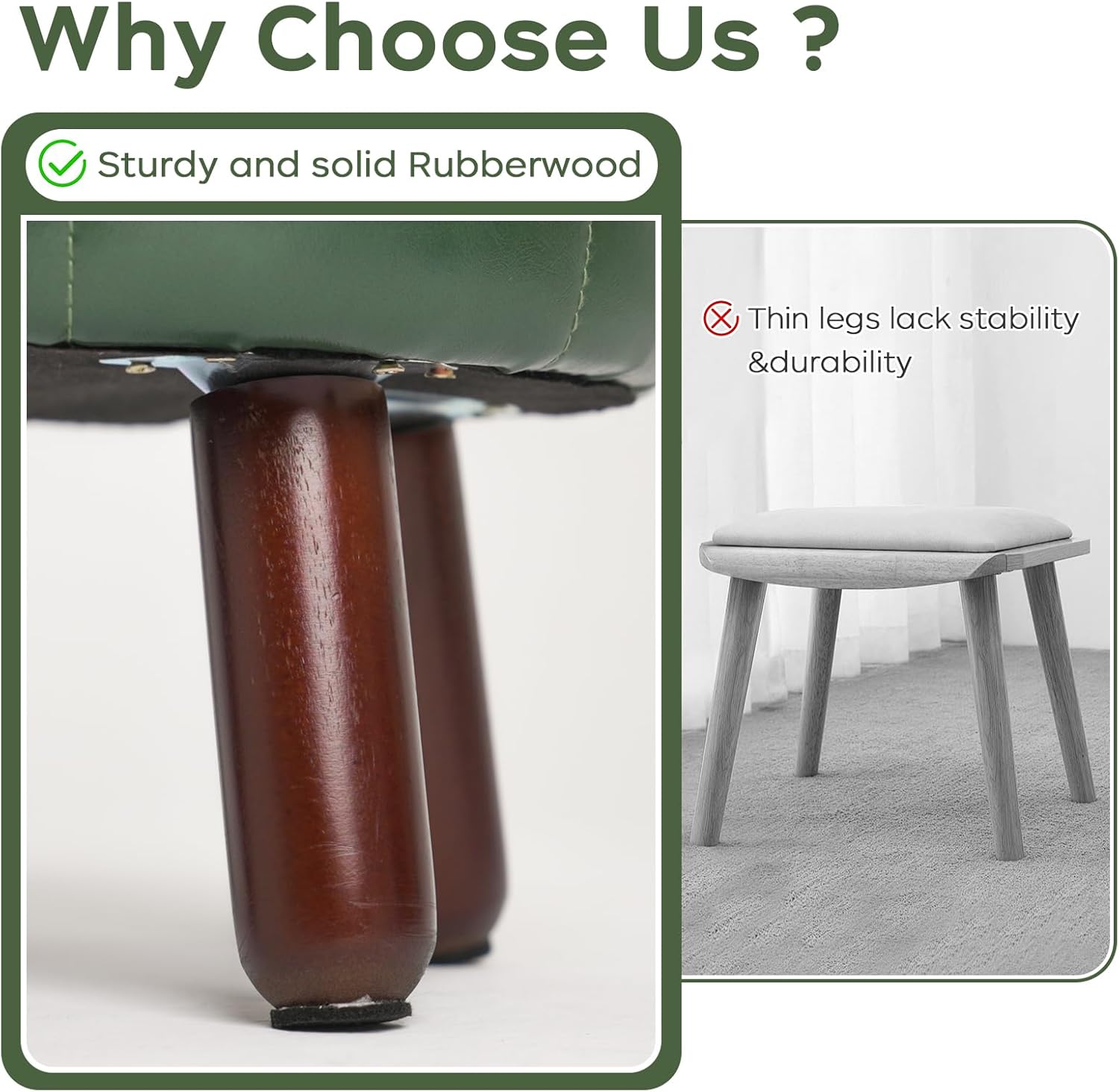 • 【Anti-Slip Design】- These faux leather foot stools small ottoman rubber legs come with dedicated felt pads to prevent scratches on floor and keep it from sliding.Wood leg with non-slip felt pad is quiet when moving, and can avoid leaving scratches on floor.The small footstool is perfect for small spaces and is compact enough not to get in anyone's way.