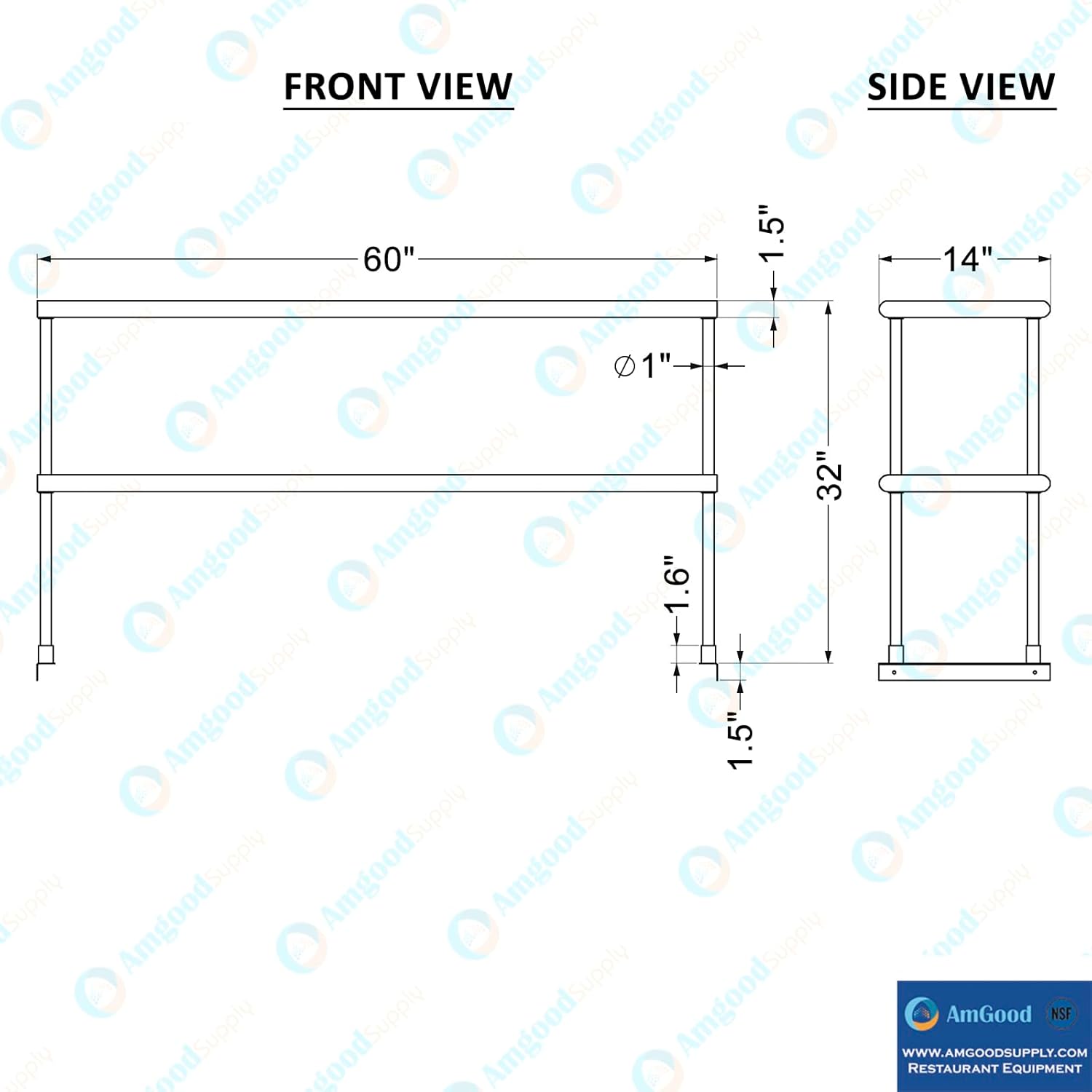 • 14 in. x 60 in. x 32 in. double-tier overshelf. Each tier holds up to 300 Lbs, providing robust support for heavy kitchen essentials.