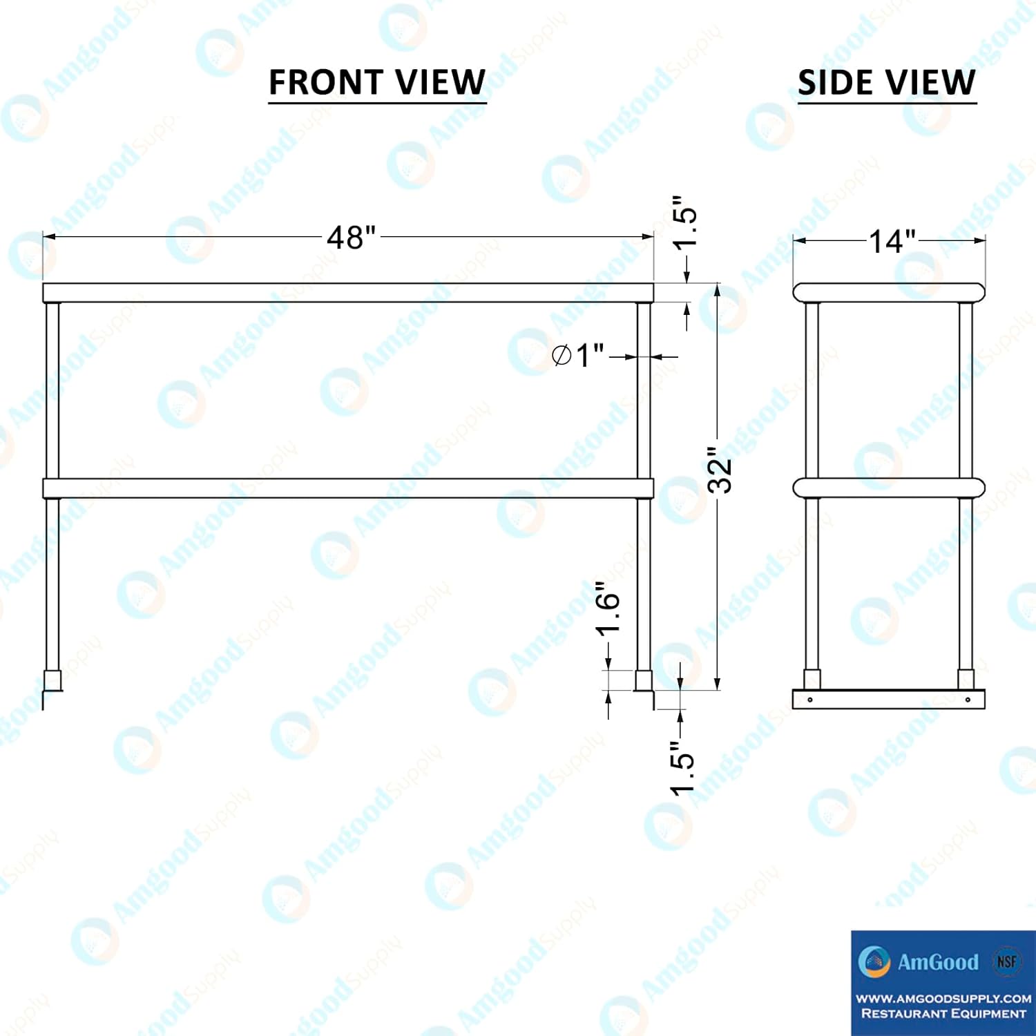 • 14 in. x 48 in. x 32 in. double-tier overshelf. Each tier holds up to 275 Lbs, providing robust support for heavy kitchen essentials.