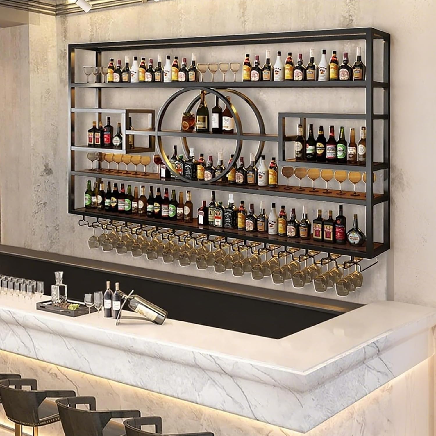 • 【Large Storage Space】The wall-mounted wine rack can be used as a bar decoration or a large wine storage cabinet. This height can store most wines or spirits when we sit at a small bar to relax all day or have a party. The wine glass rack is sturdy enough to hold more wine glasses. The wine rack doubles as a large storage rack, making the space look neat and organized