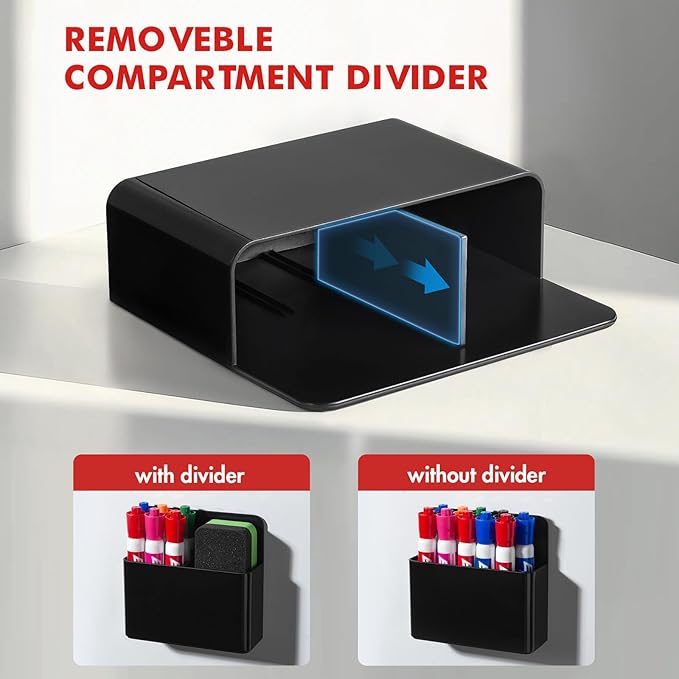 • 【50% INCREASE IN MAGNETIC FORCE】- Our pen holder uses a 1.5mm thick magnet, which has a 50% increase in magnetic force compared to a 1mm thick magnet. The magnet covers the entire back of the product, ensuring that the pen holder will not slide or fall off(Excluding markers and Whiteboard eraser)