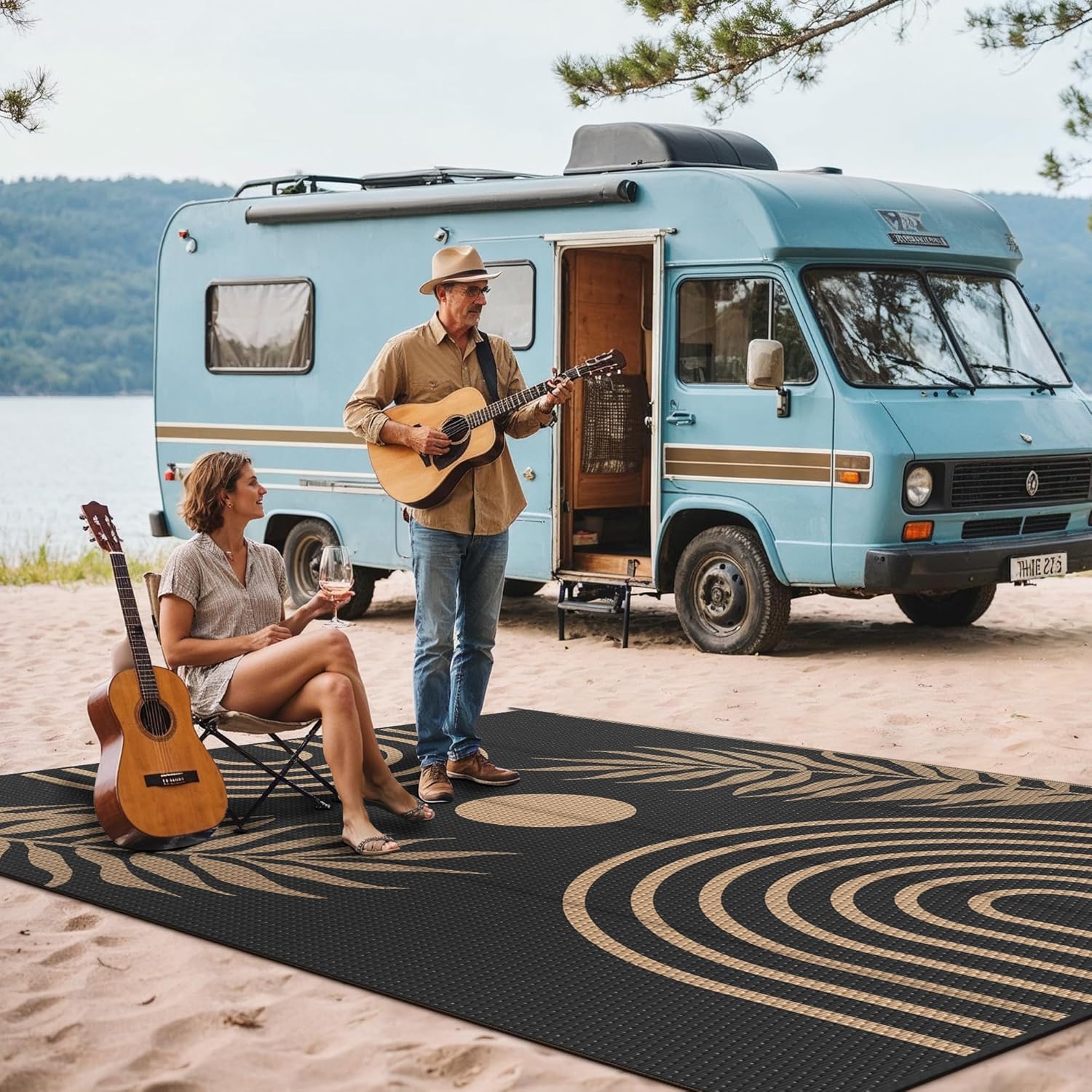 • Easy to Clean & Portable: Cleaning the carpets is very easy. Whether it's food spills, sand or dirt, simply wipe or hose it down for a quick cleanup. This outdoor rug is very lightweight and portable, with loops on all four corners and 4 hooks for securing the camping rug. It is also supplied with a carry bag so you can simply pack it up and take it with you. This combination of convenience and practicality makes it a must-have for your outdoor gear