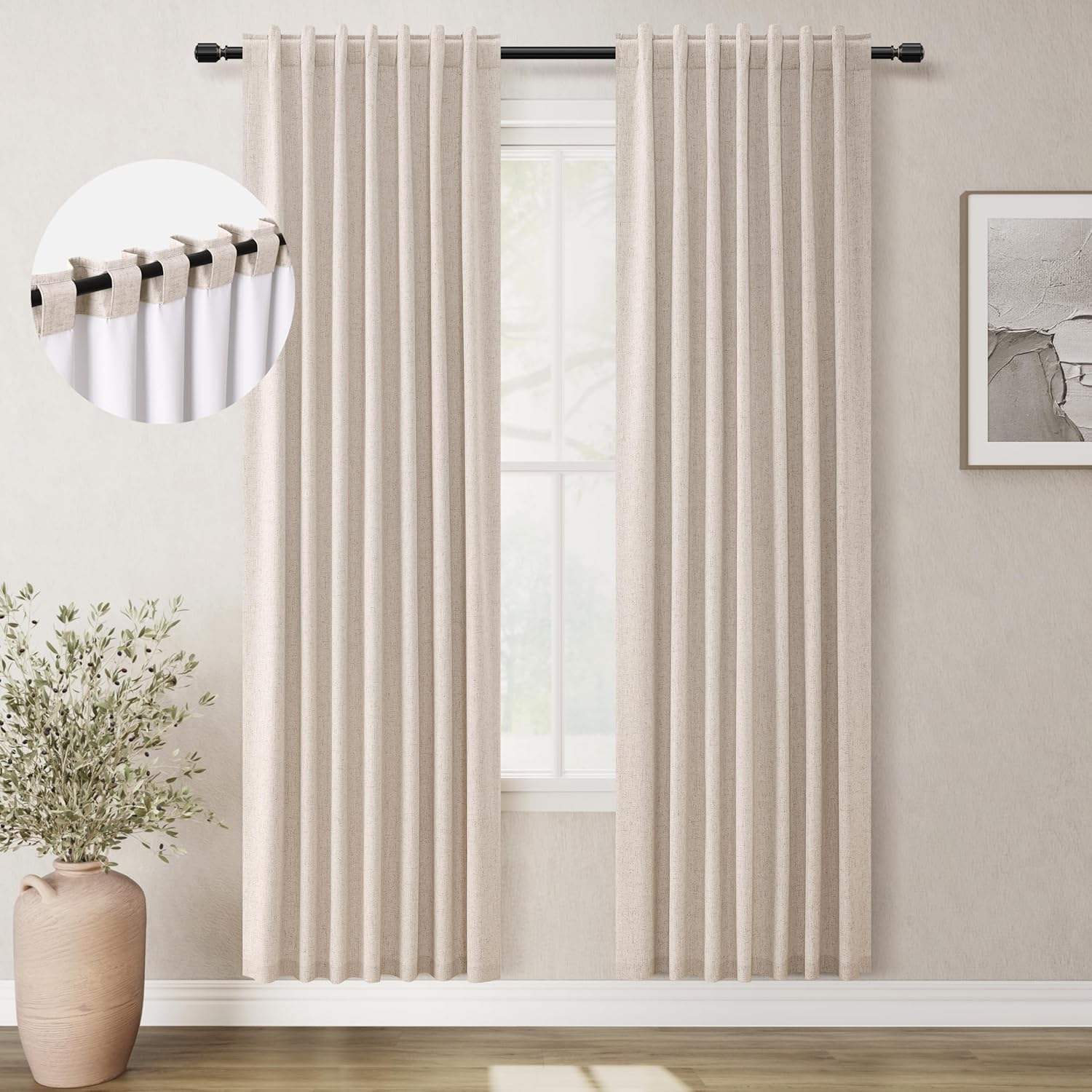 • 3 Hanging Options: Differ from the traditional curtains with grommet, BOODII linen curtains with back tab and rod pocket can full block sunlight fully. (1) Using the back tabs design to create an elegant pleated look and sit closer to the wall than traditional ring curtains, which helps to block out more sunlight; (2) Using rod pocket for a classic effect; (3) Using clip rings on track system or curtain rod, slide open/closed easily (clip rings are not included).