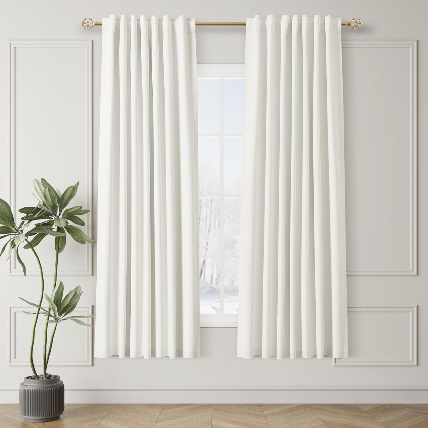 • Thermal Insulated Room Darkening Curtains: The blackout curtains with 300GSM high-density linen blend fabric block out the heat in summer and cool air in winter while sunlight blocking and soundproof. Provide a easy and comfortable home.
