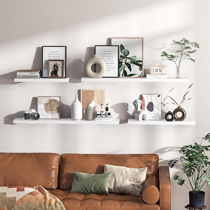 • Multi-scene & Functional - Our wall-mounted shelves are not only aesthetically pleasing but also highly functional, making them an ideal choice for various settings in your home. Use them to showcase your collection, display books, or highlight prized possessions. These shelves are perfect for exhibiting photo frames, small plants, models, or audio equipment in your living room, office, or study.