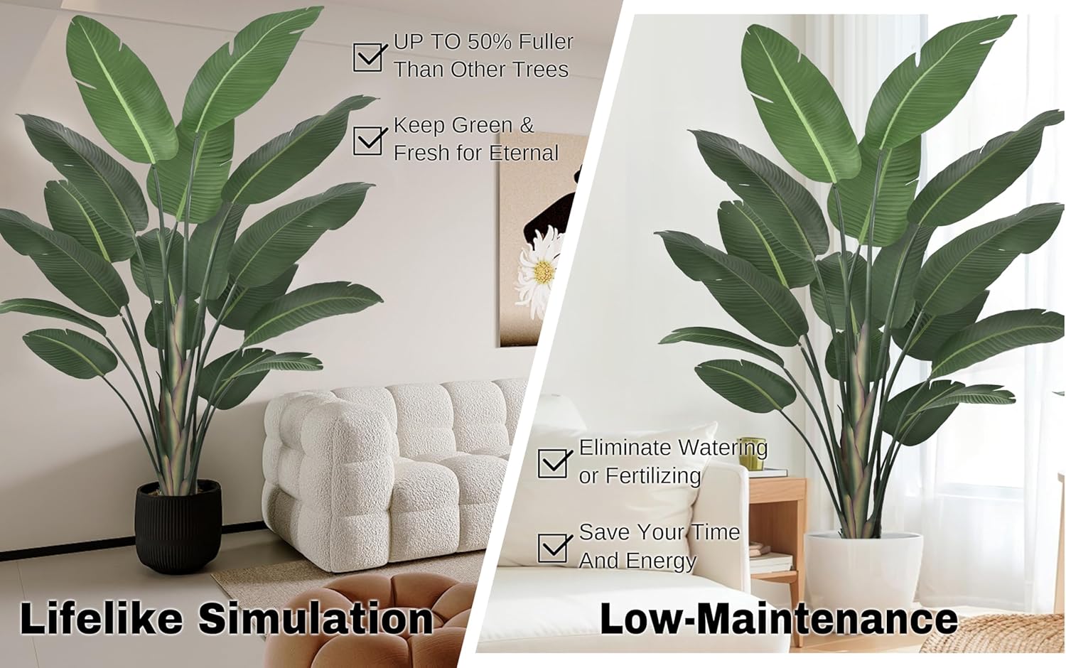 • 【Realistic Artificial Plants】8 feet tall birds of paradise plant artificial features realistic branches and leaves , using mature technology to create a fake plants that mimics the foliage of a natural tree. It will be a beautiful scenery in your home