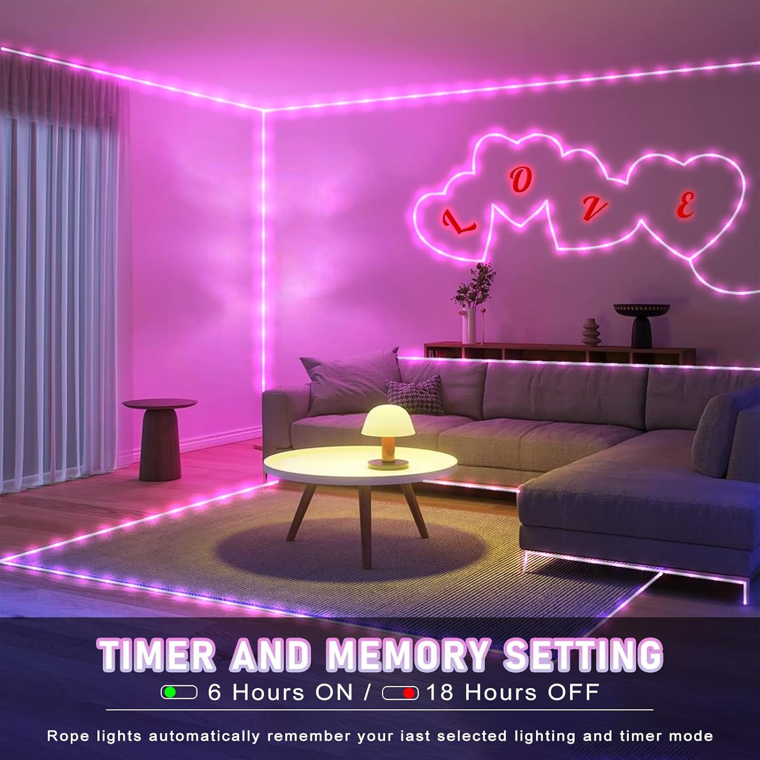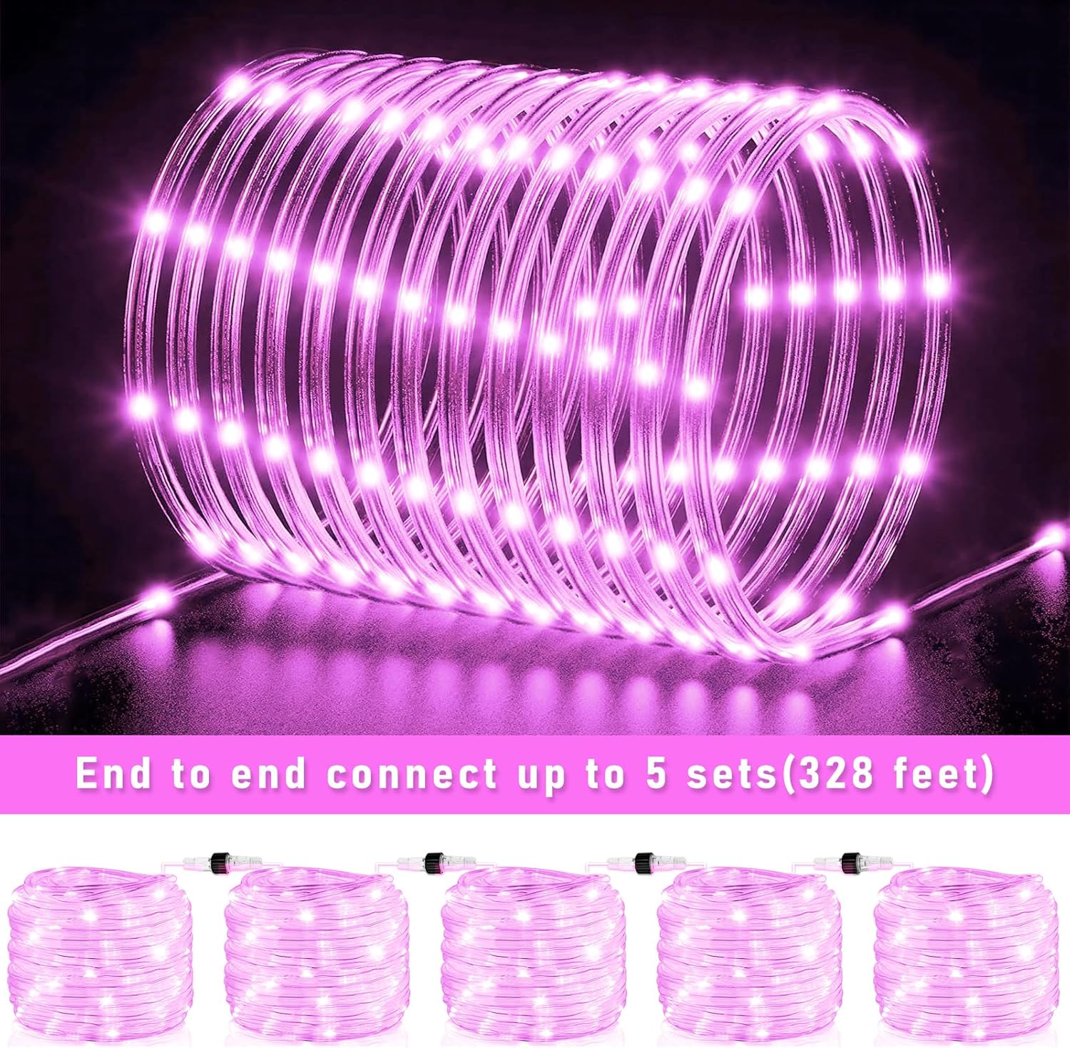 • 【Connectable Rope Lights】- Our upgraded led rope lights feature has 66ft lighting length, 6.6ft lead wire, total 72.6ft length. And the spacing between each LED bead is 4 inches, the light is bright but not harsh. The rope lights indoor can be connected end to end up to 5 sets to illuminate your home and create a warm and romantic atmosphere!