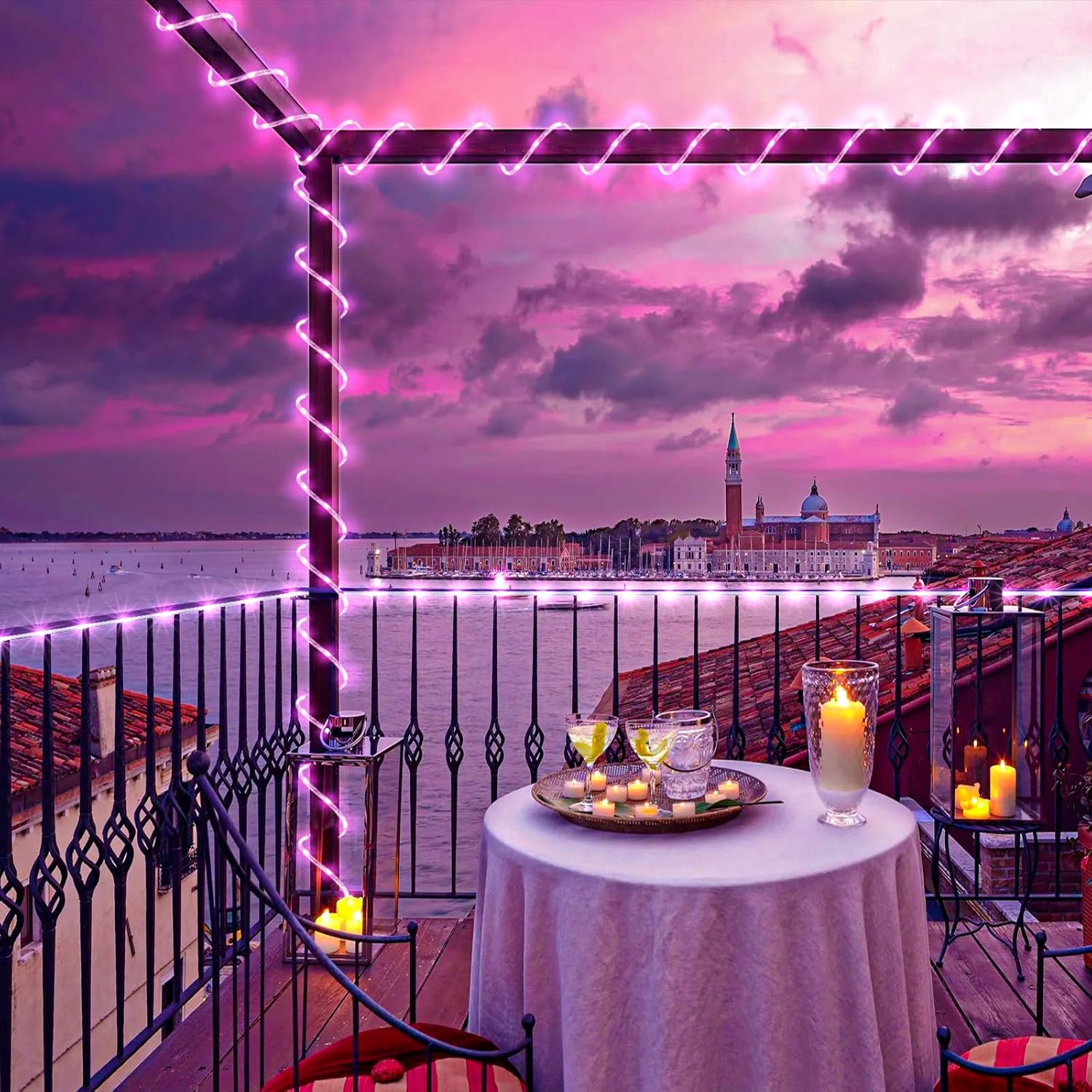 • 【Waterproof Outdoor String Lights】- IP65 Waterproof design, they are suitable for all weather use, remaining bright and sparkling even during strong rain and windy days. The outdoor rope lights is ideal for year-round outdoor decor and can illuminate gazebos, canopy, corridors, gardens, and patios. But please note the plug is not waterproof.