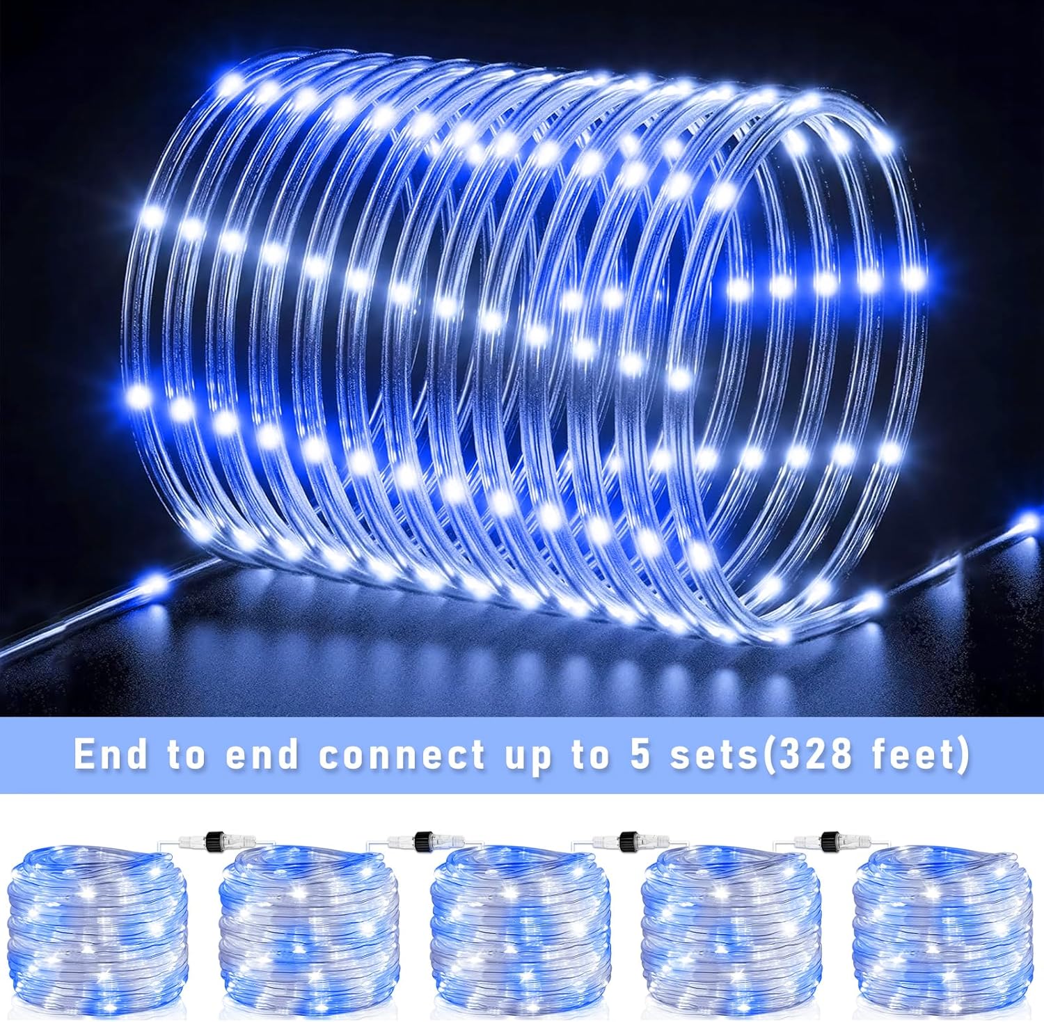 Rope Lights for Outside, 66FT 200 LED Christmas Lights Outdoor with Waterproof 8 Modes, Connectable Tube String Light for Indoor Bedroom, Garden, Backyard, Patio, Pool Decorations - Blue White