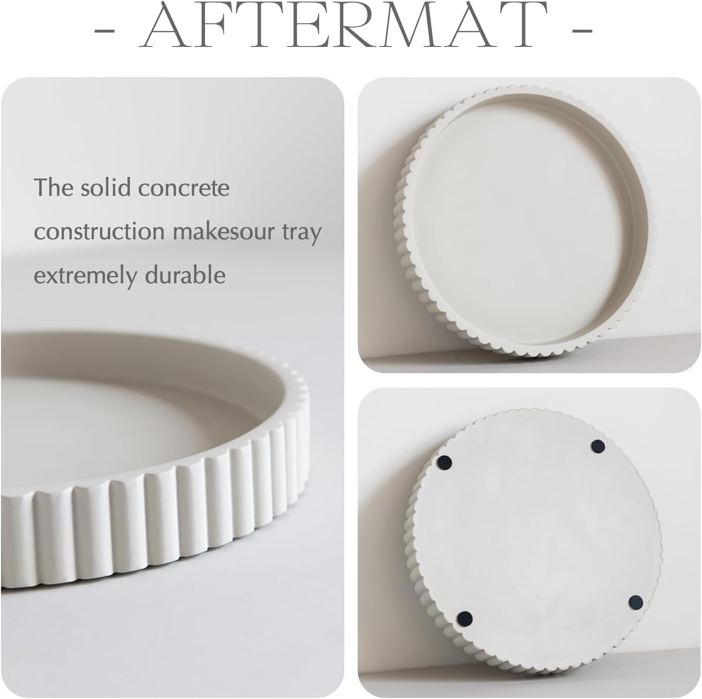 • Exquisite Quality: Fashioned from 100% solid concrete, our trays emerge as one-of-a-kind artistic creations, each narrating its own story. They are the quintessential elements to infuse an air of sophistication into your abode. The gracefully grooved circular trays, in particular, are designed to double as alluring decorative platters.