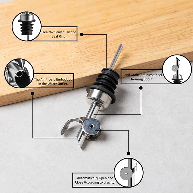 • Gravity-Powered Pouring - Featuring a gravity-activated spout, this olive oil dispenser bottle automatically opens when tilted for pouring and closes seamlessly when placed vertically, which is perfect for quick and controlled drizzling.