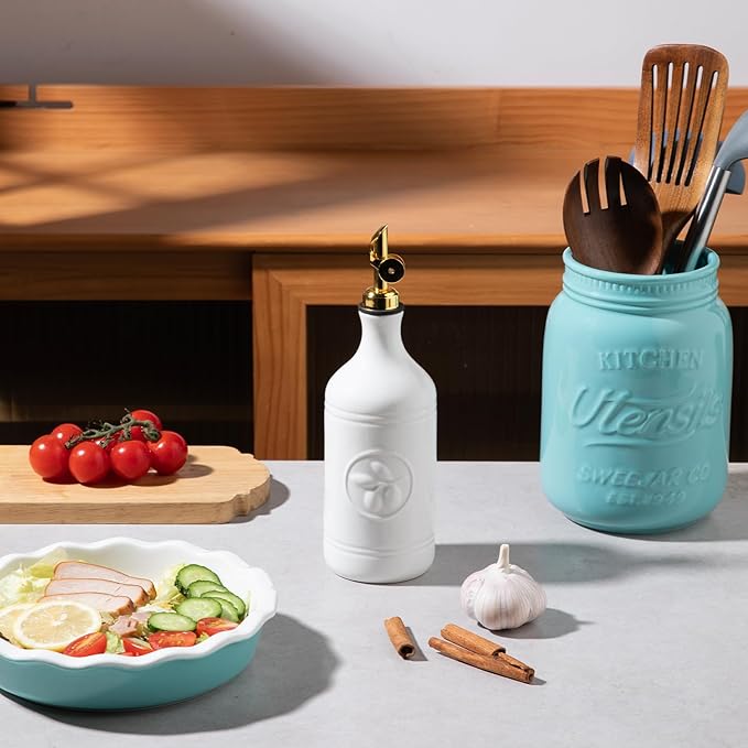 • Versatile & Practical - Sweejar ceramic oil bottle is made of high-quality, BPA-free thick ceramic, protecting fluids from heat, light and oxygen to maximize freshness. Ideal for storing various liquids like olive oil, vinegar, etc. It's widely used in kitchens, restaurants, bars and other places.
