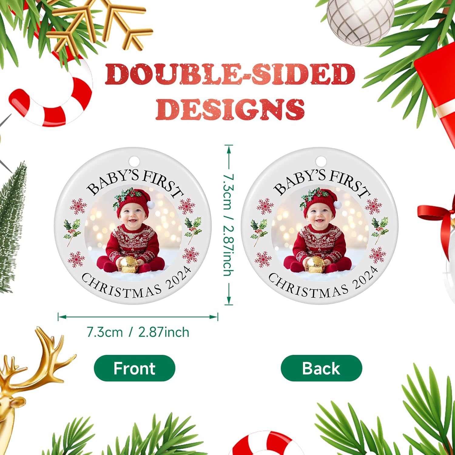 • FIRST CHRISTMAS ORNAMENT: This personalized ornament is perfect for commemorating your baby’s first Christmas. It is suitable for both boys and girls. Personalize baby's first christmas ornament uniquely with your Baby Photo, Name, Date of Birth. Click "Customize Now" to start personalizing your own ornament and celebrating baby's first Christmas with this cherished baby's first Christmas ornament 2025.