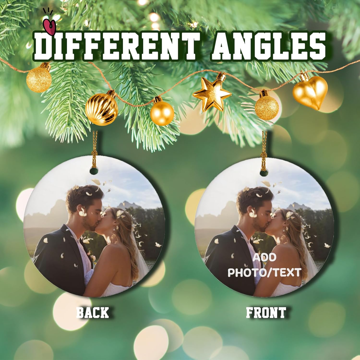 • High-Quality Personalized Ornaments---This custom Christmas ornaments are made of high quality ceramic, 3’’, and has smooth touch feeling. And used advanced thermal transfer technology make print effect looks wonderful, it will never fade you can design it on Christmas tree, door or outside.