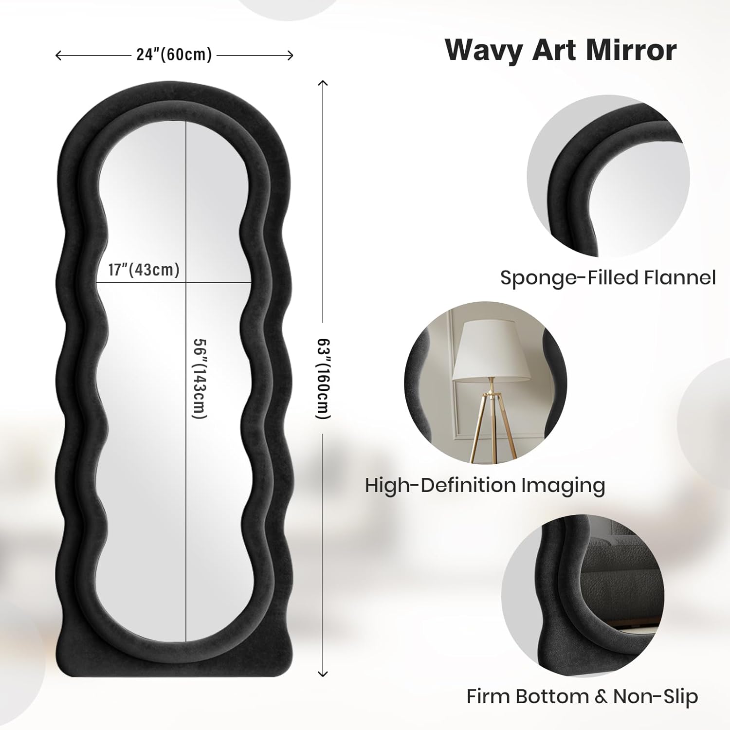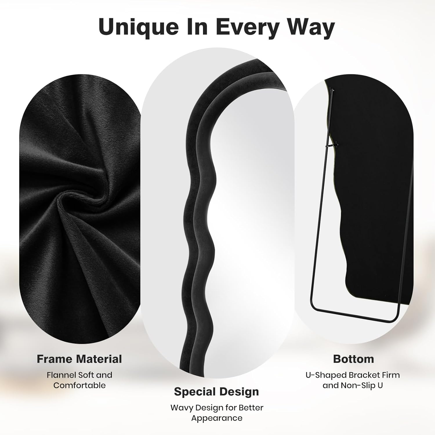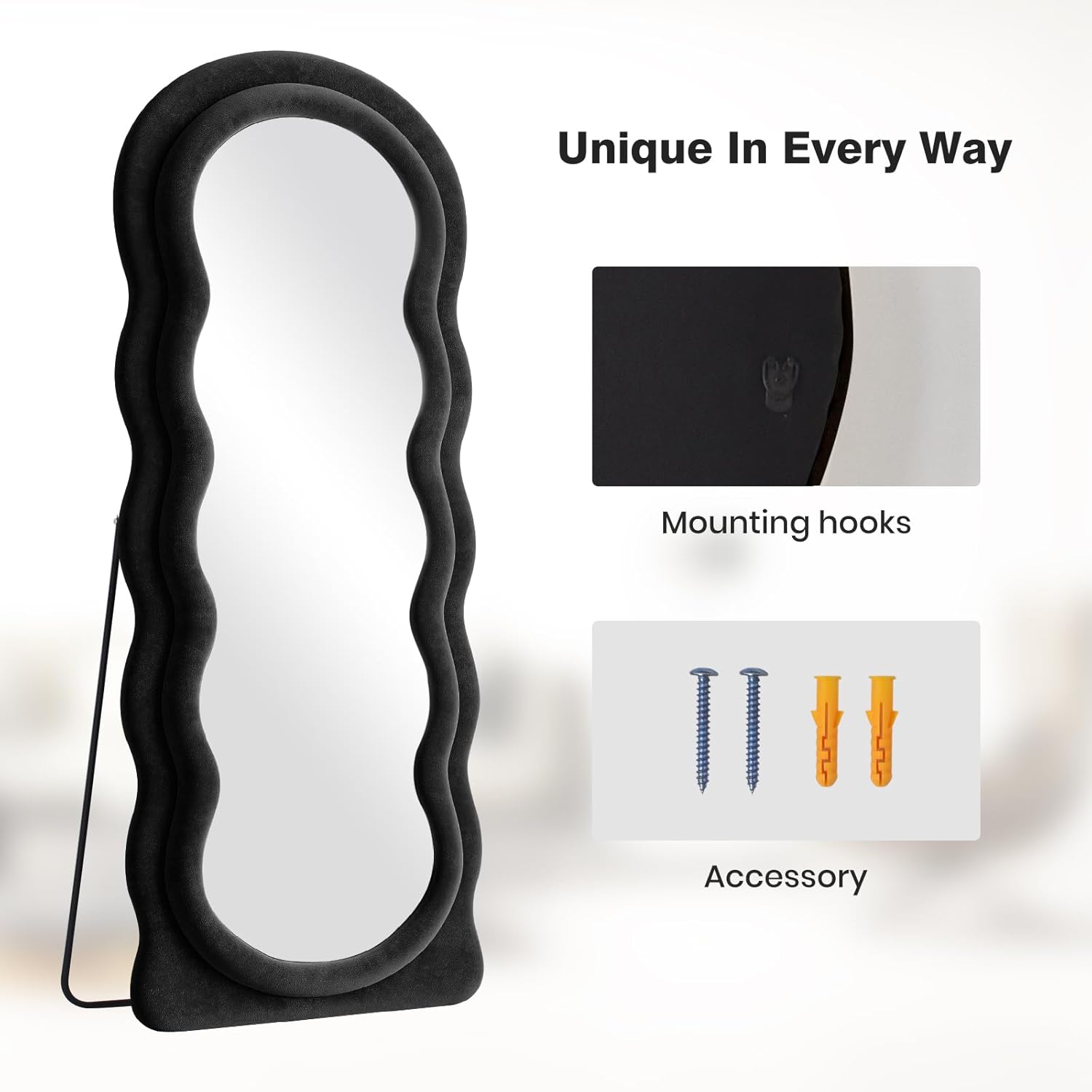 • Black Flannel Irregular Wavy Frame Floor Mirror: The full length standing mirror features a modern style that can complement any type of room decor, adding a touch of elegance to your room. It will be a great wall decor art piece for your home. This full body mirror with sleek looking is also great for selfies or pictures in general