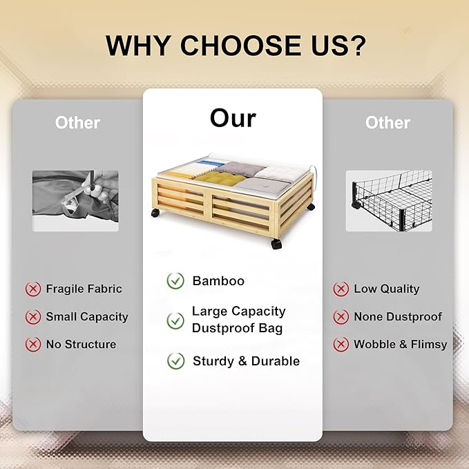 • 【Sturdy & Durable】Made from 100% natural bamboo; supports up to 120 lbs; includes a dust-proof bag for seasonal clothing and essentials