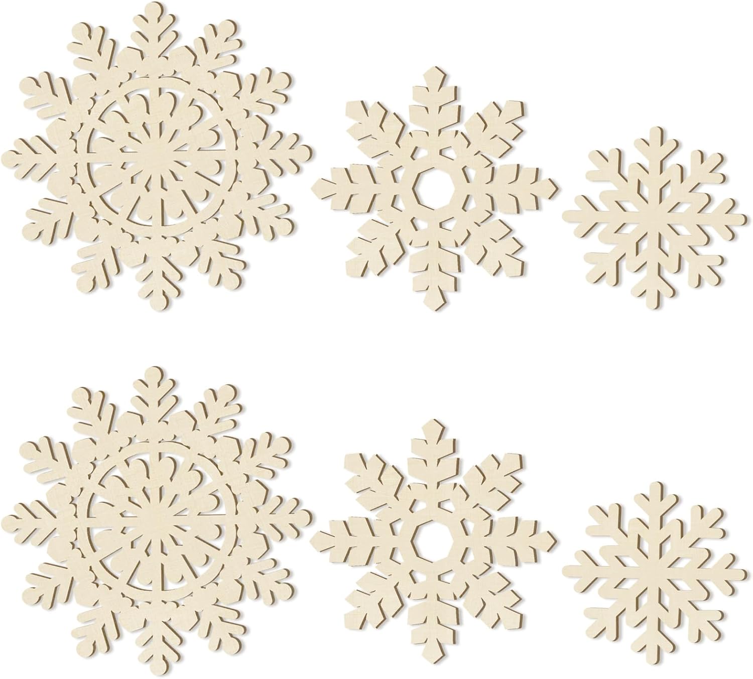 Hollow Wooden Snowflake Ornaments for Paint Christmas Decorations Cutouts Unfinished 6Pack, Wood Snowflakes for Crafts DIY Blank Cutouts Ornament Winter New Year Decorations (3 Styles 3 Size)